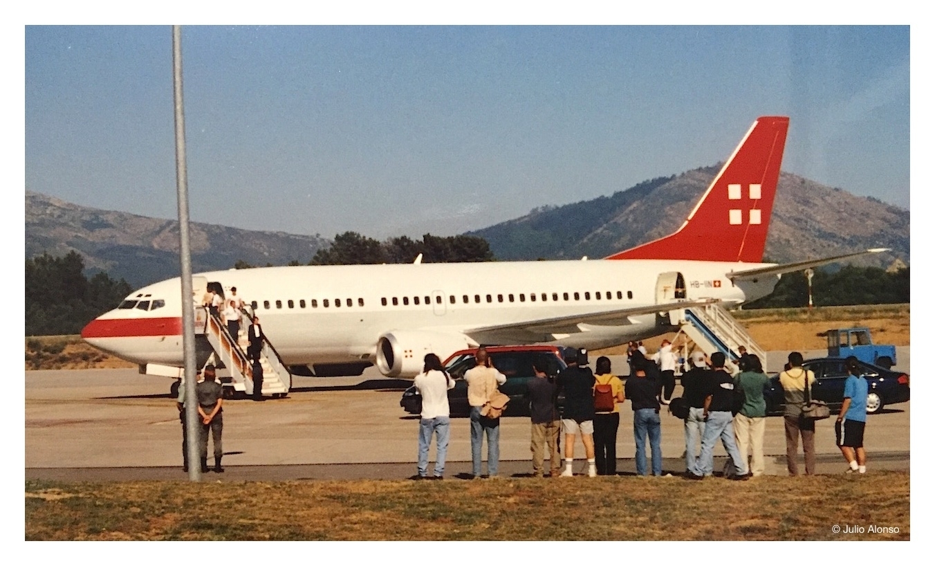 Aterrizó el avión privado de los músicos y unos coches y un autobús esperaban a todos los componentes del grupo. Mientras, desde la distancia, detrás de la verja metálica que les impedía el acceso, los admiradores saludaban emocionados e incluso dos chicas agitaban una pequeña pancarta; todos ellos intentaban hacer notar su presencia.