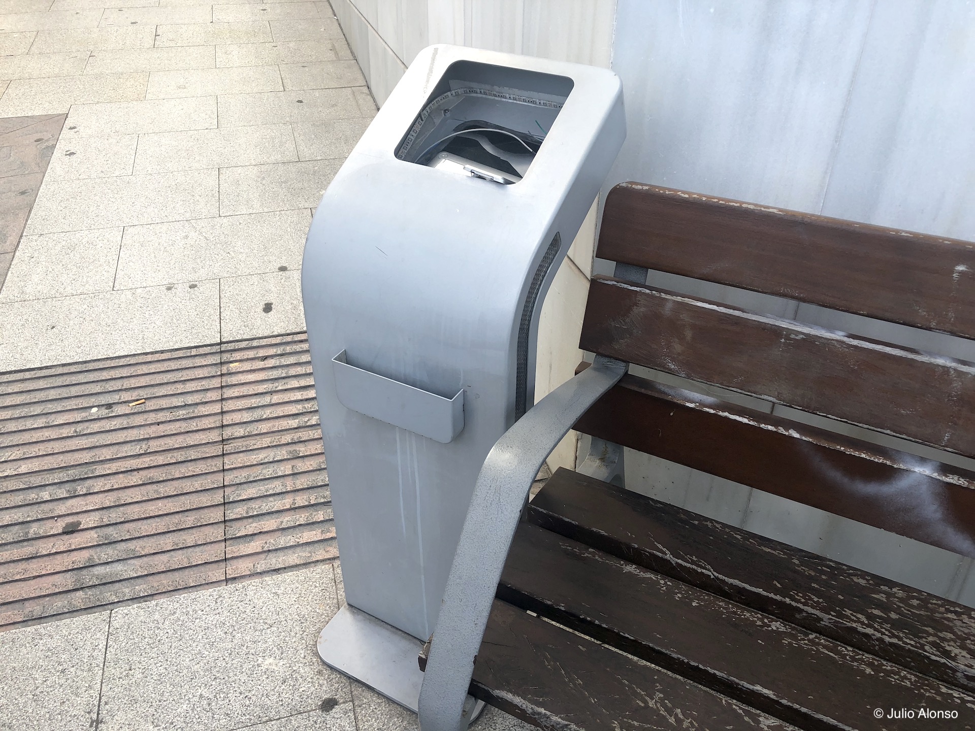 El Concello había colocado un banco y una columna de carga para teléfonos y ordenadores y era muy utilizada por los viandantes. Ahora está totalmente inservible. Algunas personas apuntan a la falta de vigilancia porque está claro que una parte de la ciudadanía no respeta las iniciativas públicas y privadas que prestan un servicio público.