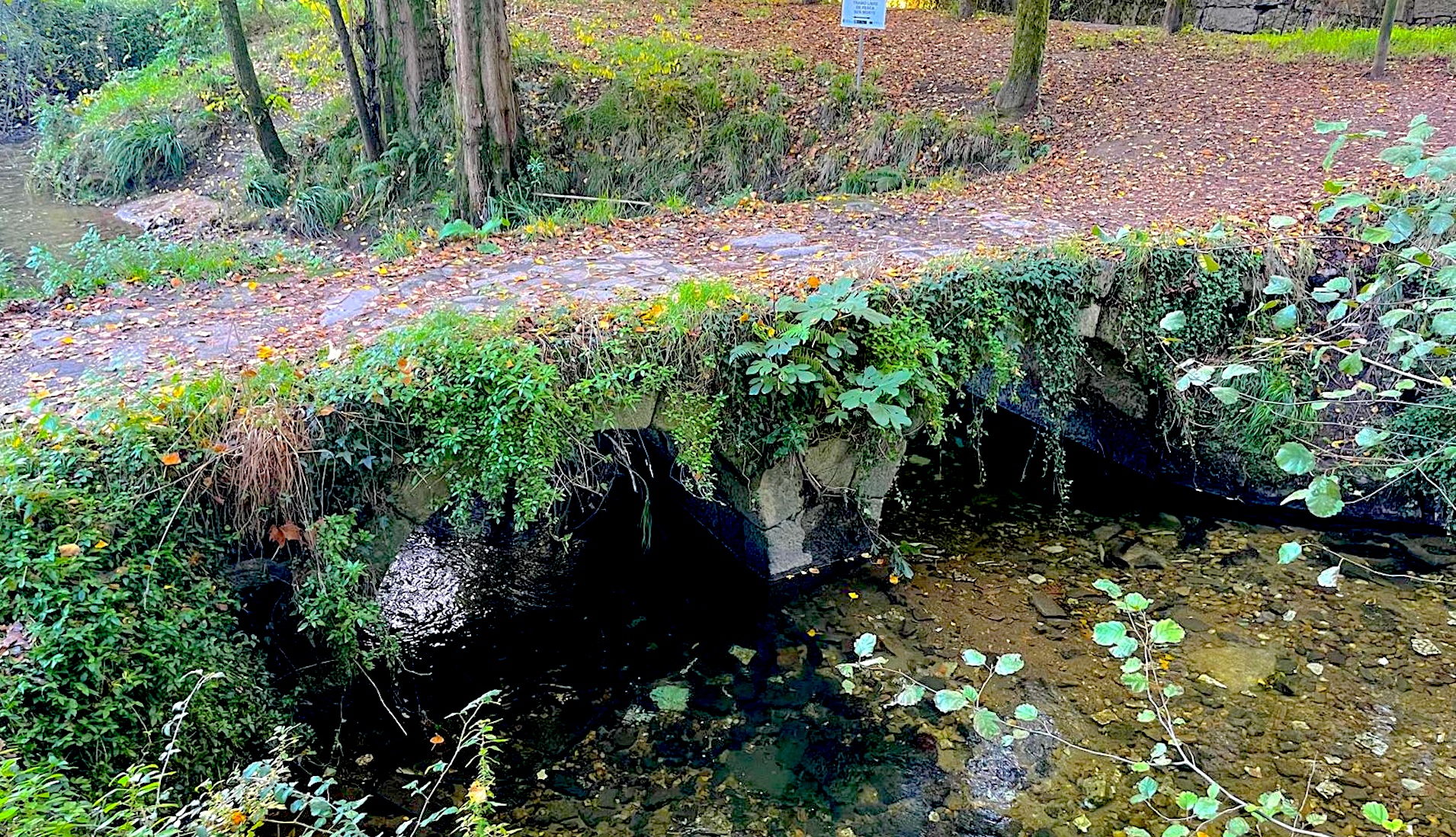 Un amable lector (A.L.) nos envía esta fotografía pidiéndonos que le demos difusión al estado de abandono de este puente medieval de Sárdoma sobre el río Lagares, también conocido como puente Abeleira. Se desconoce la fecha exacta de su construcción, pero se sabe que viene utilizándose, por lo menos, desde el siglo XII. Es de granito, tiene unos diez metros de longitud, y es importante resaltar que durante años sufrió las consecuencias del tráfico rodado, algo que llegó a afectar a su conservación puesto que está un poco hundido. En la actualidad está abandonado a su suerte, pues la vegetación, tal como puede comprobarse en la imagen, va tapándolo y casi llega a ocluir alguno de sus arcos. Está claro que el patrimonio requiere ciertas labores periódicas de conservación y este puente medieval merece un poco de atención.