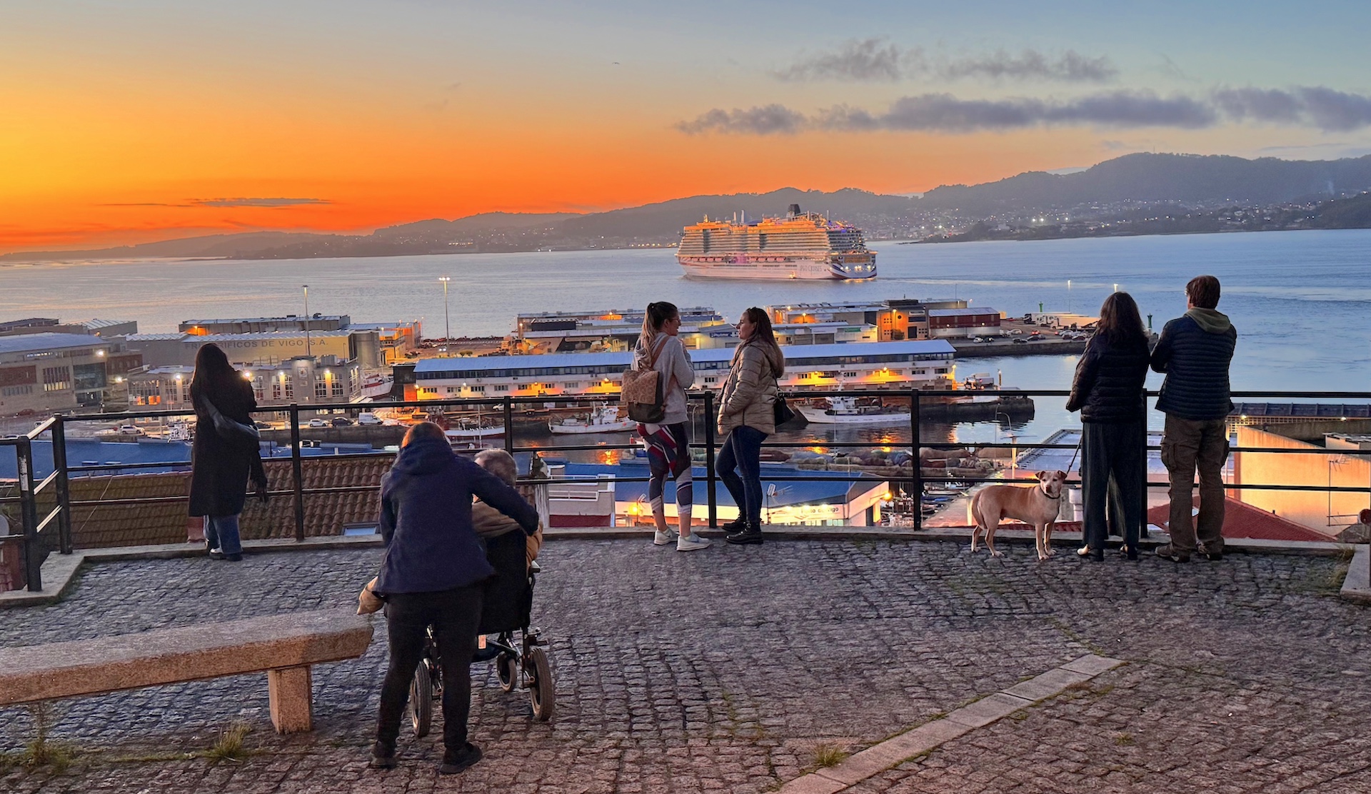 El mirador del Paseo de Alfonso XII, en la ciudad de Vigo, sigue siendo un punto de reunión tanto para propios como para foráneos. Sobre todo al atardecer de los días soleados, cuando los colores de la puesta de sol casi resultan mágicos e invitan a la ensoñación. A esas horas de la tarde a veces coinciden los gigantescos cruceros abandonando del puerto hacia nuevos destinos, cruzándose con barcos de pesca y de transporte de la ría que a su lado parecen diminutos. Son tan grandes que asemejan poblaciones flotando sobre las aguas camino del horizonte. Desde la balconada del Paseo de Alfonso XII, el anochecer invita a soñar con algún viaje a los confines del mundo. Soñar no cuesta nada.