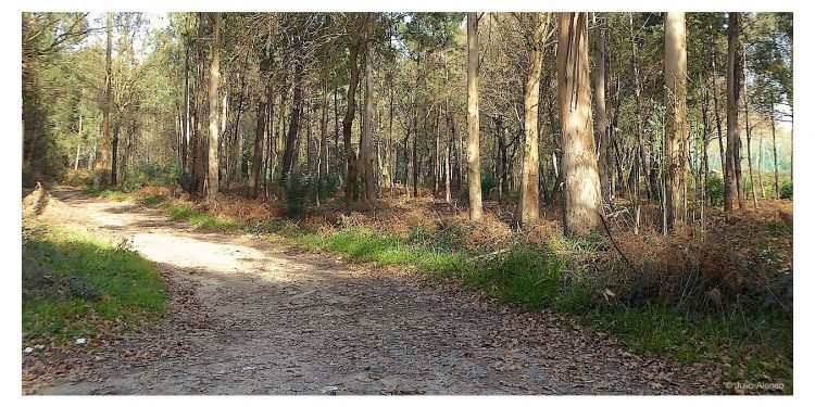 La escena, perfectamente iluminada, puede invitar al paseo en plena naturaleza, en medio de los árboles, junto a un campo de béisbol que muchas personas desconocen, y que está ubicado en las proximidades de la Universidad de Vigo. Sin embargo, no es difícil imaginar ese mismo escenario boscoso que durante el día aparenta idílico transformado, más tarde, por la oscuridad de la noche, entonces pavoroso, intimidatorio y plató inmejorable para algún horrendo crimen de alguna película de terror, o, quizá, incluso, de la propia vida real.