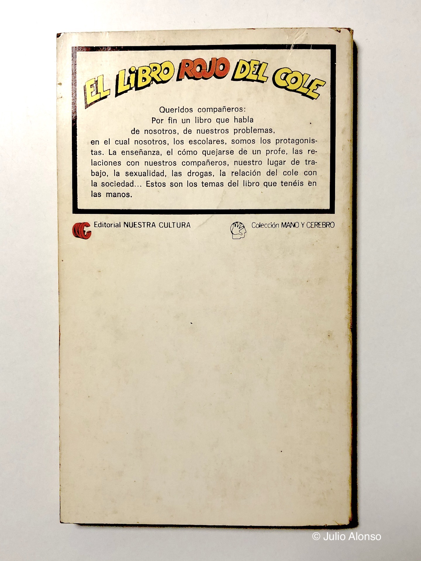 El “Libro rojo del cole”, de la Editorial Nuestra Cultura, escrito por Søren Hansen y Jesper Jensen, salió a la luz en España a finales de los años setenta y principios de los ochenta del pasado siglo XX, aunque fue publicado por primera vez en Dinamarca en el año 1969. Se trataba de un libro escandaloso y políticamente incorrecto, y en aquella época no era nada fácil de conseguir porque se publicó clandestinamente durante la Transición, aunque hoy es muy fácil y barato conseguirlo a través de internet.