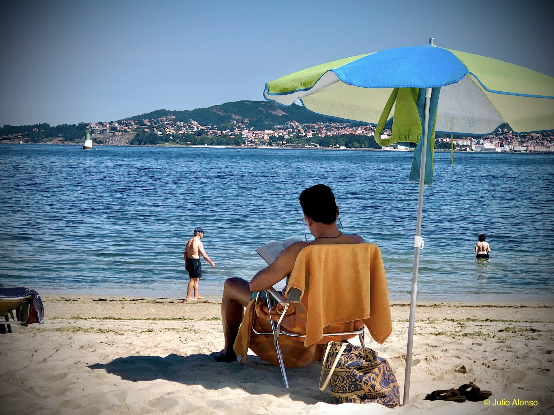 Este es el mejor plan para el verano del Covid19: una playa en un lugar paradisíaco, un silla cómoda, una sombrilla, cierto grado de soledad e intimidad, y un buen libro entre las manos. Ese plan del que hablamos y que tantas personas desean lo representa perfectamente esta fotografía tomada en una de las playas de la ría de Vigo, con la arena fina como el azúcar, con una temperatura del agua muy agradable, y con un buen libro, un libro que quizá sea “Tantos años de silencio” —que, además, se puede leer en gallego o en castellano—, del polifacético escritor Francisco Castro, de Vigo, cuyas obras ya están traducidas a numerosos idiomas de todo el mundo.