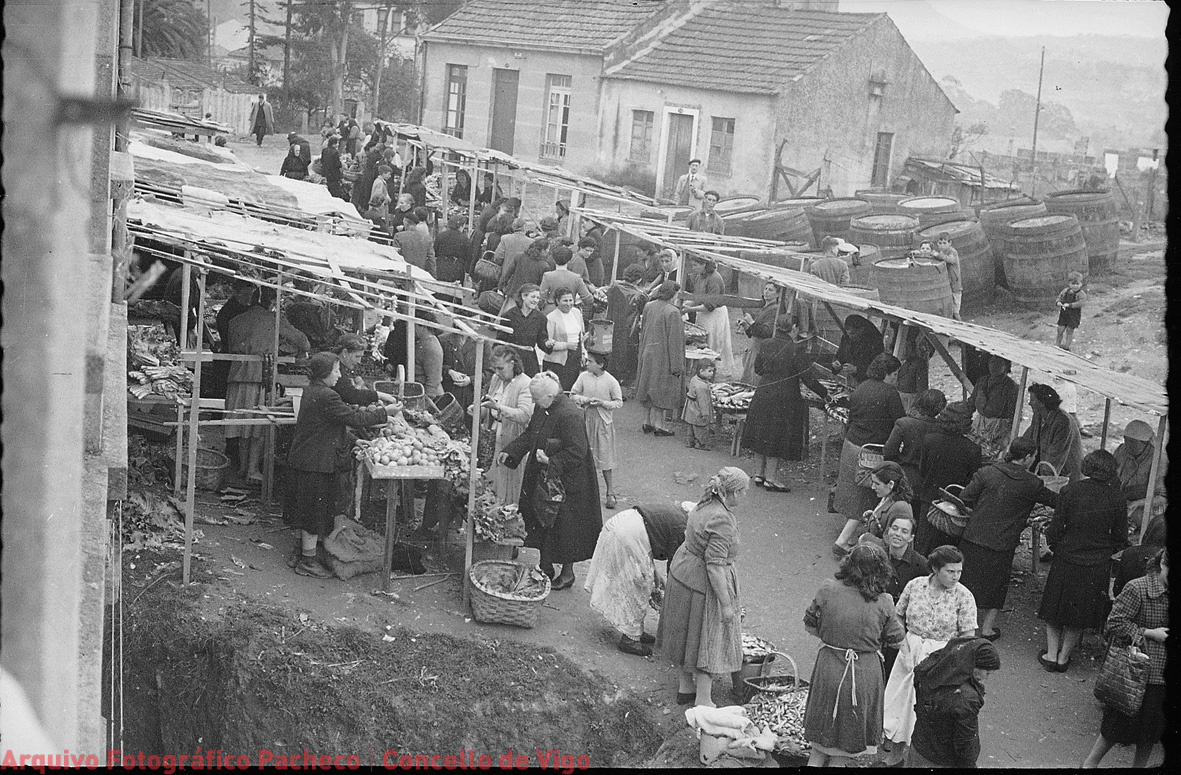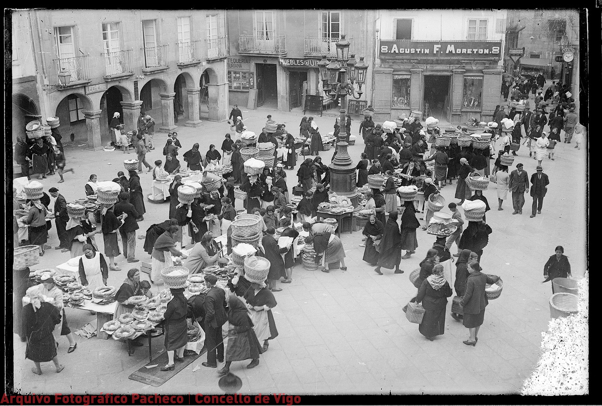 En el blog Brétemas de Manuel Bragado, Celso López Pazos explica que hasta los últimos años del siglo XIX, los mercados de Vigo eran al aire libre y se celebraban en las plazas de Princesa, Pedra y Constitución además de espacios específicos en las plazas de A Herba (Argüelles), Leña (Calatrava) o Cebolas (Méndez Núñez).