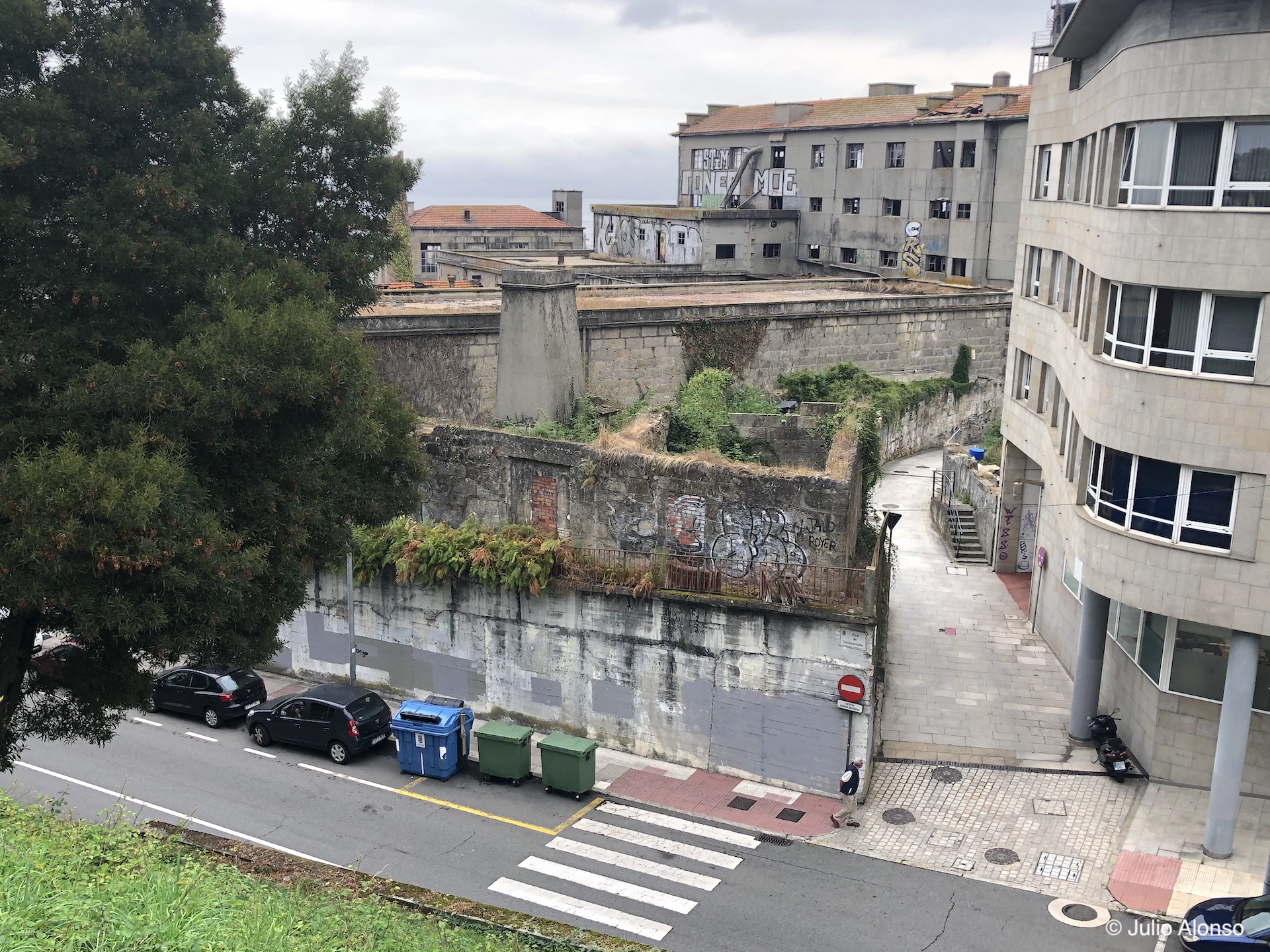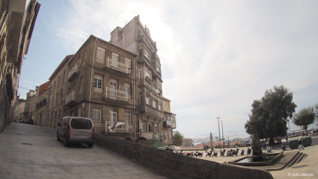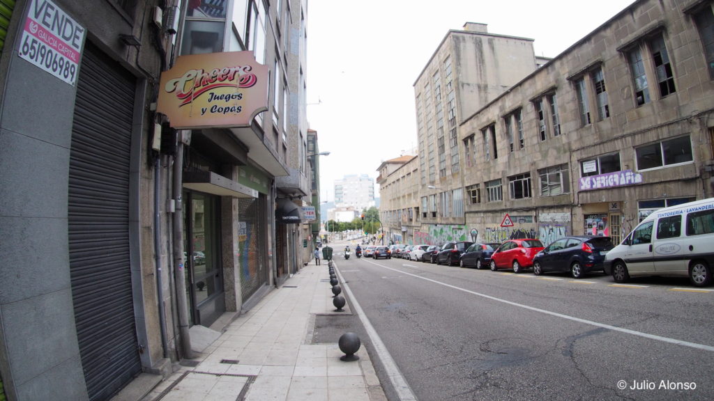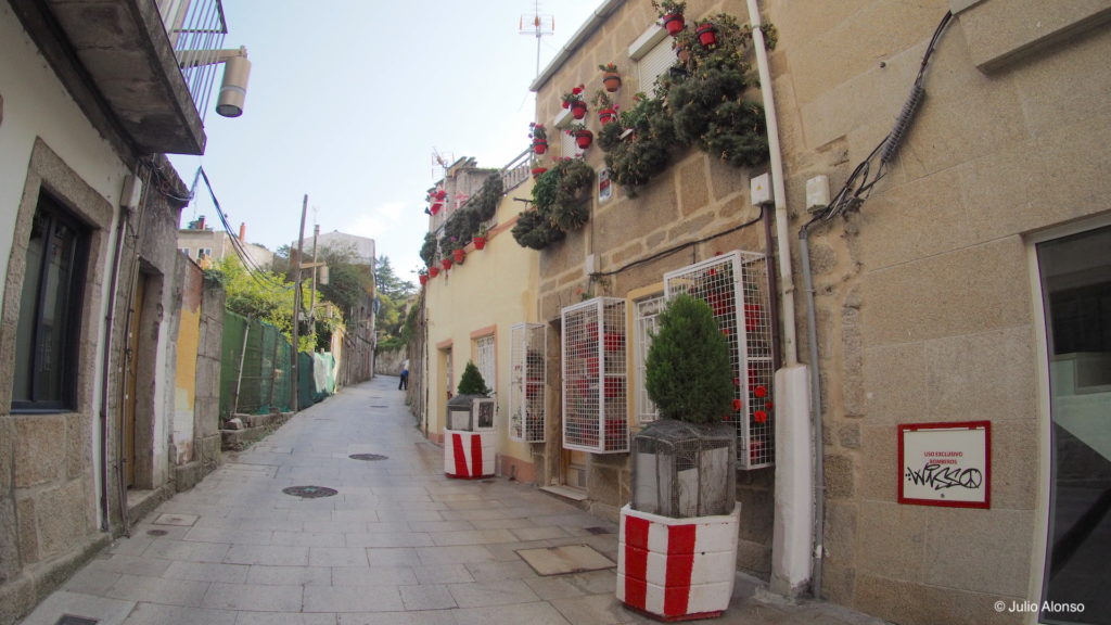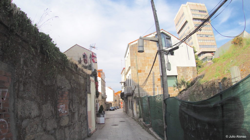 En la Rúa de Santiago, a la sombra de los cinco enormes silos de la Panificadora, existen algunas ruinas ocupadas por colonias de gatos callejeros, palomas y gaviotas, así como algunas casas que acusan el deterioro a los años y otras que ya se han rehabilitado con gran acierto. Existen varias viviendas entre las que destaca una muy antigua de planta baja cuya fachada está totalmente adornada con vistosas flores de plástico y con varios gatos haciendo guardia a la puerta. En las casas rehabilitadas existe un estudio de arquitectura y un estudio de fotografía. En una de ellas se encuentra la Editorial Elvira, la promotora del concurso de “Relatos na Rúa” (“Relatos Vigo Histórico”). En la Rúa de Santiago llegaron a existir siete bares que fueron cerrando con el paso de los años y el único que sobrevive es el Bar Nosa Terra. Sin embargo, el bar más antiguo de la calle era el Bar Tapitas, que consiguió sobrevivir al paso del tiempo conservando su propio estilo, pero que cerró sus puertas hace dos años por fallecimiento de su propietario.