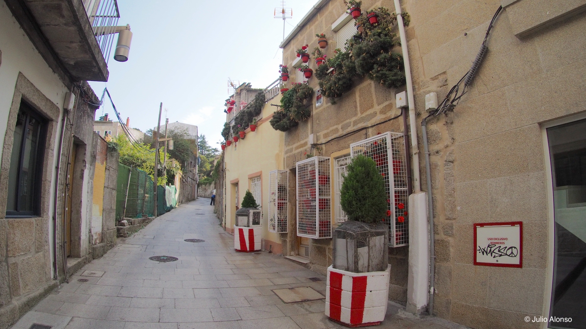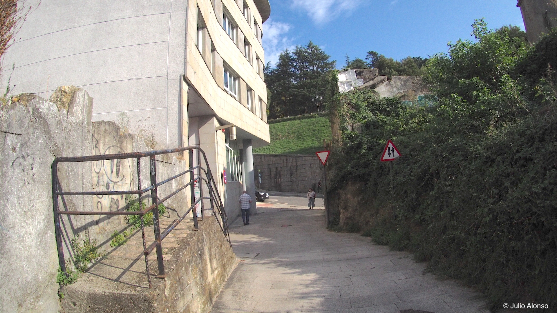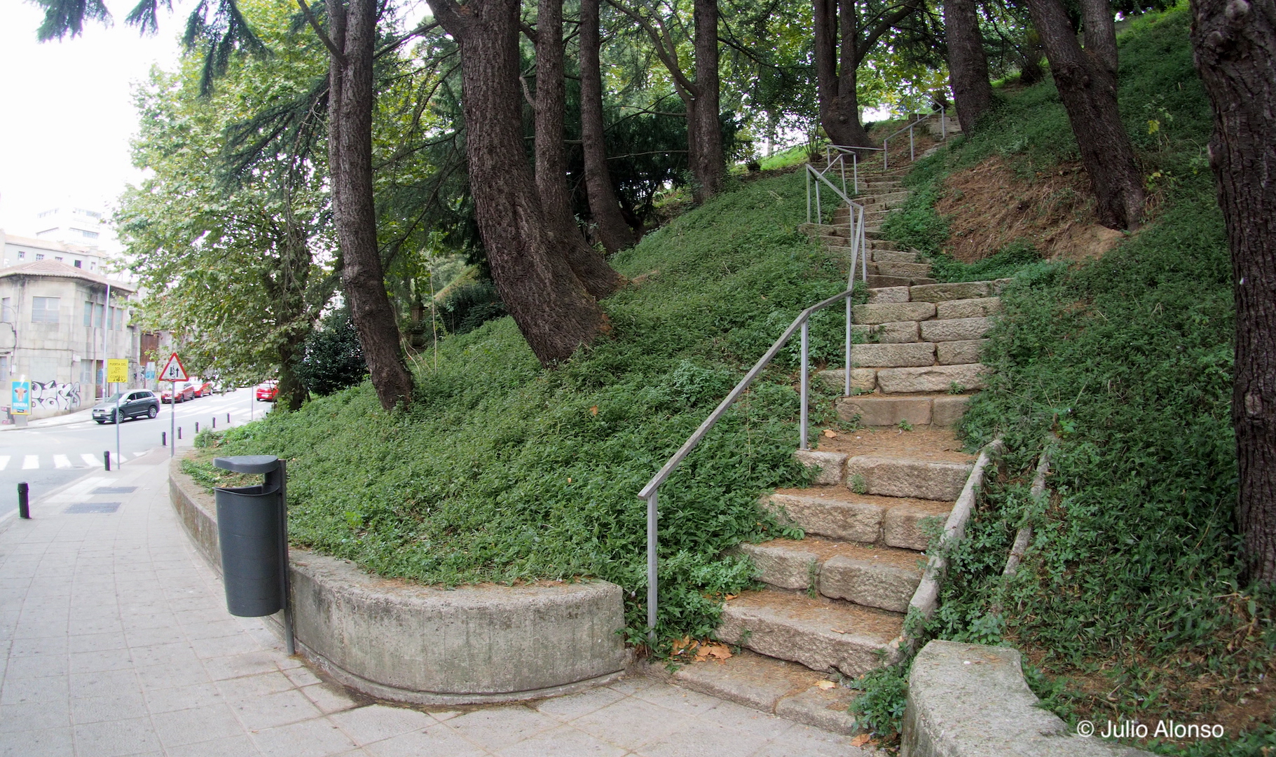 A mitad de la Rúa de Santiago existen unas escaleras que pasan inadvertidas para muchas personas que aprovechan esta vía para acortar el camino entre la Praza do Rei y el Paseo de Alfonso XII. Se trata de unas escaleras estrechas, muy empinadas y de gigantescos peldaños de piedra que comunican con el Calexón Estreito, en la parte posterior del edificio del Concello, y que son tan incómodas para subir como para bajar.