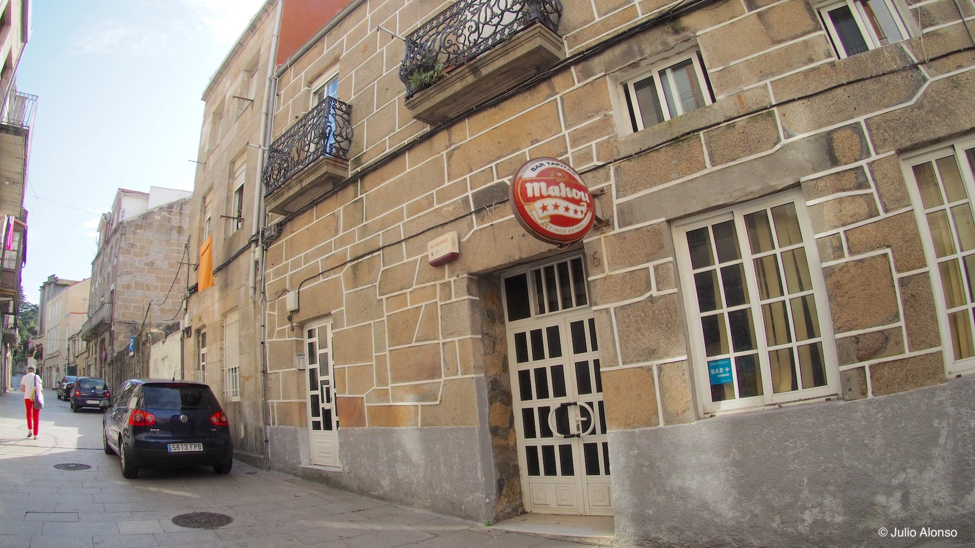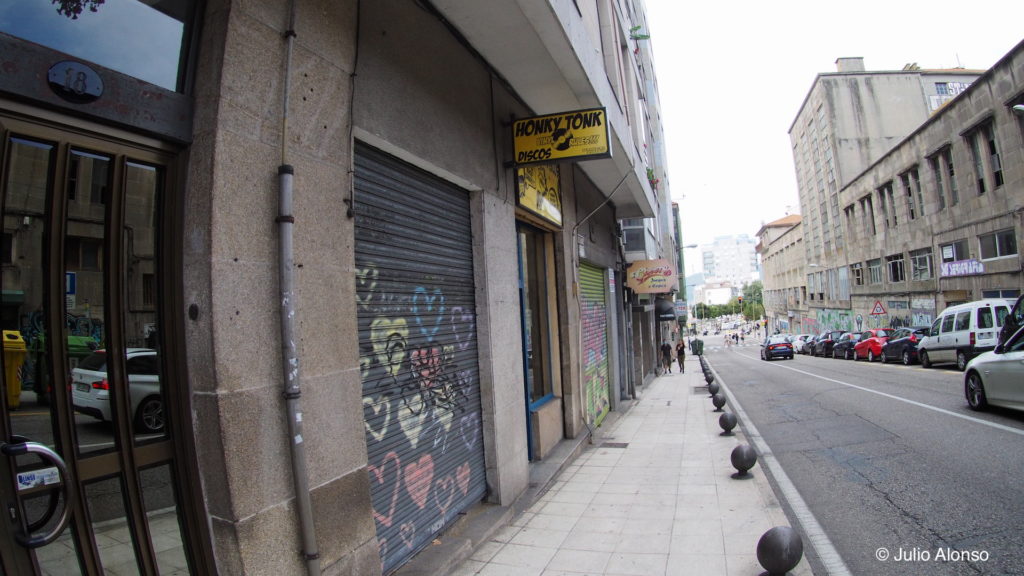 En esa misma mano de la Rúa da Falperra, enfrente de la Panificadora, aún existe la tintorería Mely-Ter, una cafetería, una tienda de ultramarinos y la tienda de discos Honky Tonk. Hace años, en el sótano profundo de un edificio a mitad de la calle existió el club Cheers, al que se accedía por unas escaleras estrechas y muy empinadas. Un poco más arriba había una cervecería que hace años cerró sus puertas, y en la parte más alta de la calle y enfrente de la fuente, existió un edificio abandonado en cuyo sótano había aparecido un cadáver. En la fachada de ese mismo edificio todavía se conservaba la señal de unos círculos concéntricos del tamaño de unos cuarenta centímetros que indicaba la existencia de un refugio antiaéreo. De ese edificio sólo quedan sus límites porque las piedras se desmontaron y se retiraron.