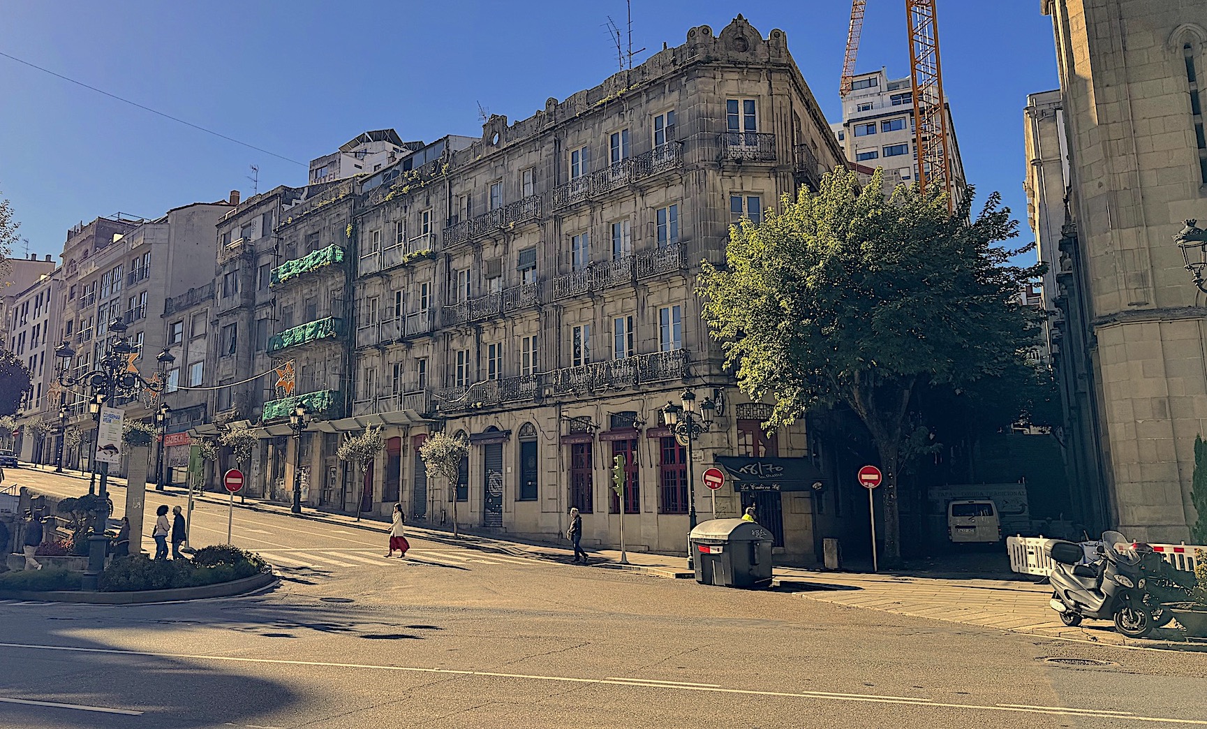 Esta es una esquina con historia que va quedando en el olvido. Se trata de la Rúa Alfonso XIII, de la ciudad de Vigo, haciendo esquina con la 1ª Travesía de Santiago de Vigo, que está en un lateral de la iglesia del mismo nombre ubicada en la Avenida García Barbón. Hasta hace cincuenta años, durante la época del franquismo, en los bajos de ese edificio estaba ubicado el cuartel de la Policía Armada, lo que se conocía como “los grises”. En días señalados y, sobre todo, en los momentos de mayor complejidad laboral o social, las furgonetas aparcaban en las aceras del entorno e incluso llenaban esa pequeña calle —casi callejón—, algo que resultaba inquietante salvo para la vecindad, que ya estaba acostumbrada a esa presencia y a esos movimientos. Con el paso de los años el local se transformó en un establecimiento de hostelería. Pocas personas recuerdan aquellos tiempos de represión, aquella época gris.
