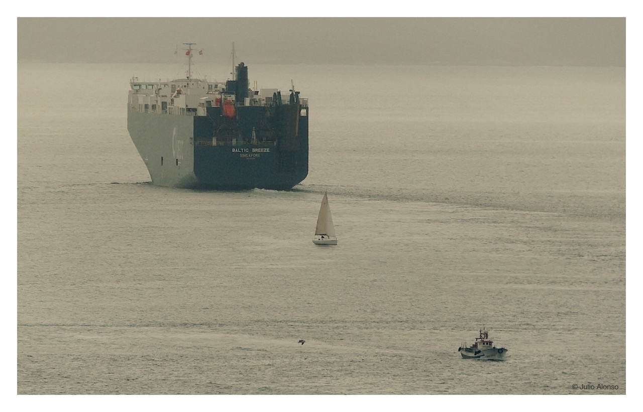En ella observamos un enorme buque que transporta coches fabricados en Vigo a otros rincones del mundo; un velero de recreo que se deja llevar por el viento; y un pequeño barco de pesca que vuelve a puerto después de la faena, mientras una gaviota revolotea a su alrededor a la espera de un descuido para hacerse con alguna pieza de pescado. Pero la estampa difícilmente se repite porque el movimiento portuario es incesante, y la luz del sol nunca se refleja del mismo modo sobre su superficie. Barcos de todo tipo surcan las aguas de la misma ría en la que antaño navegaron piratas como Francis Drake, en el siglo XVI, los turcos en el siglo XVII, que fue el escenario de la famosa batalla de Rande a principios del siglo XVIII (concretamente en el año 1702), e incluso navegantes imaginarios como el capitán Nemo a bordo de su Nautilus la visitaron más tarde en busca de un gran tesoro que continúa alimentando la leyenda, porque la ría de Vigo sigue sorprendiendo y embelesando a propios y a foráneos.