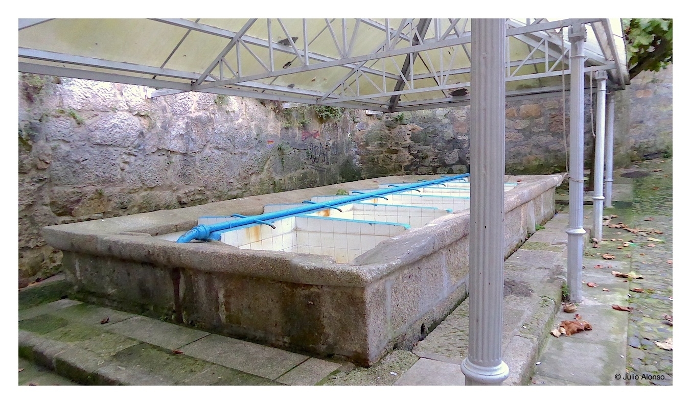 El lavadero de la fotografía es conocido como Lavadero de A Barroca, en la calle Poboadores y muy próximo a la fuente del mismo nombre. Son elementos históricos de la ciudad de Vigo que han conseguido sobrevivir al desarrollo urbanístico y que pocas personas conocen. Los lavaderos tenían su razón de ser en unas épocas —no tan lejanas— en las que no existían lavadoras ni agua corriente en las viviendas y la ropa se lavaba a mano en esas áreas comunitarias que eran, además, rincones apropiados para la conversación amena y para las confidencias, unos espacios reservados en exclusividad para las mujeres, a las que estaban reservadas las tareas domésticas. En aquellos tiempos el agua se recogía en las fuentes públicas y se transportaba a las casas utilizando simples cubos o vistosos baldes, que eran unos recipientes troncocónicos de madera con cinchas metálicas que se llevaban sobre la cabeza. Todo esto ya forma parte del recuerdo de quienes peinan canas, sin embargo, tanto la fuente de A Barroca como su correspondiente lavadero, se conservan para disfrute de las venideras generaciones de vigueses y como testimonio de las costumbres de otros tiempos.