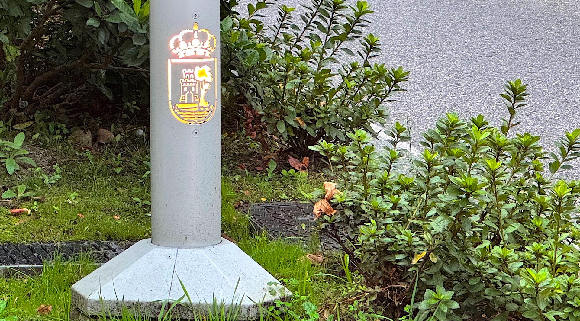 La ciudad de Vigo esconde, como otras, numerosos detalles que pasan inadvertidos para la mayoría de las personas que transitan por sus calles y plazas. Algunos detalles están en lo alto de algunos edificios y pueden ser figuras, gárgolas o azulejos finamente decorados. Las farolas isabelinas de algunas calles también tienen detalles curiosos en lo alto de sus brazos: unos pequeños y discretos escudos circulares. Asimismo, algunas de las farolas de corte más moderno también tienen sus propios detalles y para muestra la fotografía que mostramos y que ha sido tomada en la Gran Vía, en el tramo que baja hacia la Rúa Urzaiz. En la imagen puede observarse el escudo de la ciudad en la misma base de la farola, un pequeño escudo que se ilumina cuando cae la noche y se enciende la luminaria.