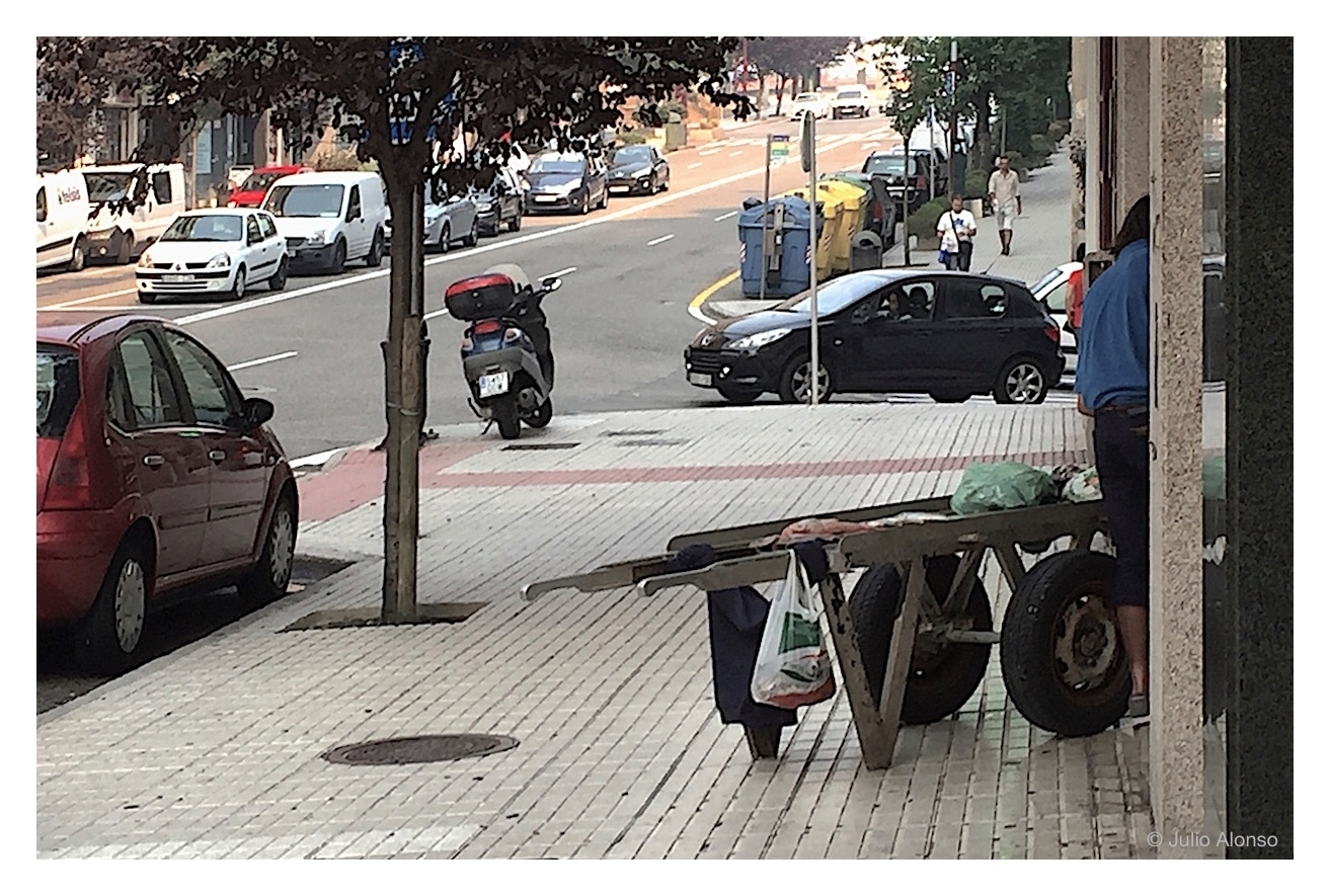 Todos ellos formaban un conjunto de proveedores que iban, como decimos, puerta a puerta ofreciendo productos de todo tipo, una costumbre que hoy ya resulta anacrónica seguramente como consecuencia de unas industrias cada vez más gigantes que van extendiendo sus tentáculos de modo implacable en busca de la máxima rentabilidad, y sin importar a quienes se llevan por delante. Sin embargo, hace poco hemos topado casualmente en una céntrica calle con un vendedor ambulante de pescado fresco. A media mañana recorre las calles con el mismo carro que presumiblemente usa en la lonja, y constituye una imagen que resulta chocante en estos tiempos en los que casi todo se compra envasado o en locales preparados al efecto y cada vez más especializados.