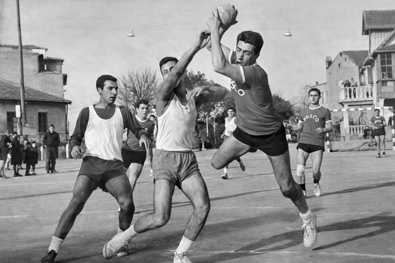 En el mes de diciembre de 2013 falleció Jorge Valcárcel Pérez, indiscutible personalidad histórica del deporte vigués. Desde muy joven destacó en actividades deportivas y, sobre todo, en remo, en el Real Club Náutico de Vigo, en la década de los años cincuenta del pasado siglo XX, y luego tuvo una actividad muy relevante en el balonmano. Precisamente, en la fotografía se le puede ver sujetando la pelota en lo alto y a punto de realizar un lanzamiento a puerta.