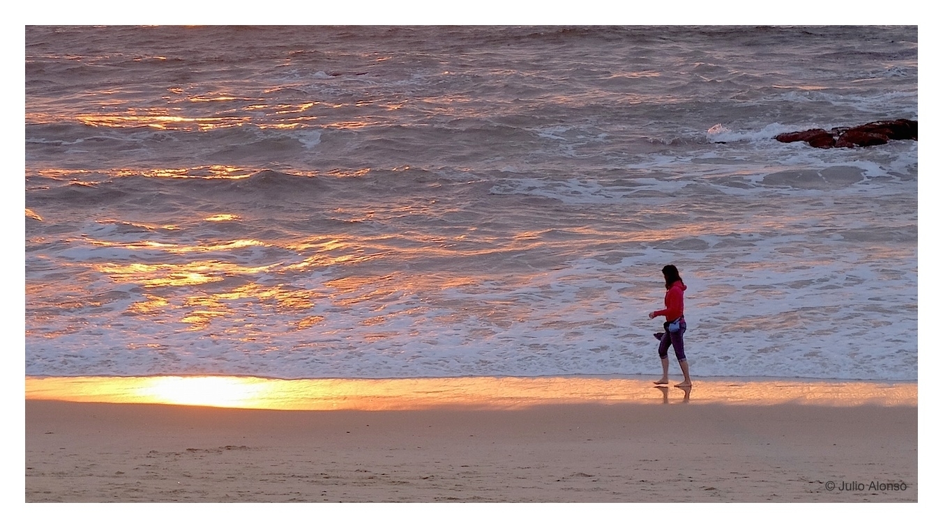 Pero Galicia es la tierra verde, llena de color y de vida gracias, precisamente, a ese ciclo natural que luego desemboca en un verano que, como este año en curso, resulta breve en si mismo, pero prolongado en la sequía y en la luz de un sol invernal que al atardecer provoca vistosas irisaciones que recuerdan el estío, cuando el gentío impide la introversión y el paseo solitario por esa orilla de la playa bañada por las aguas espumosas.