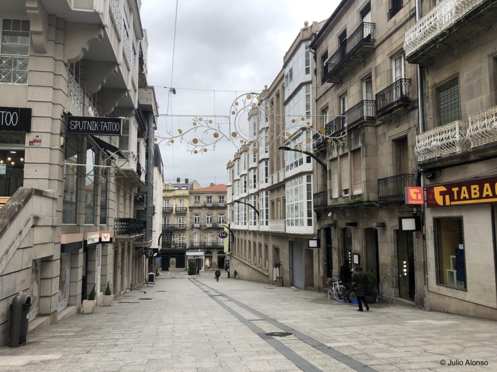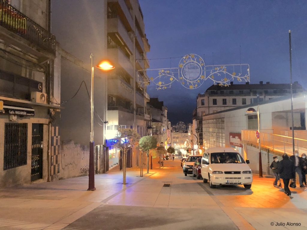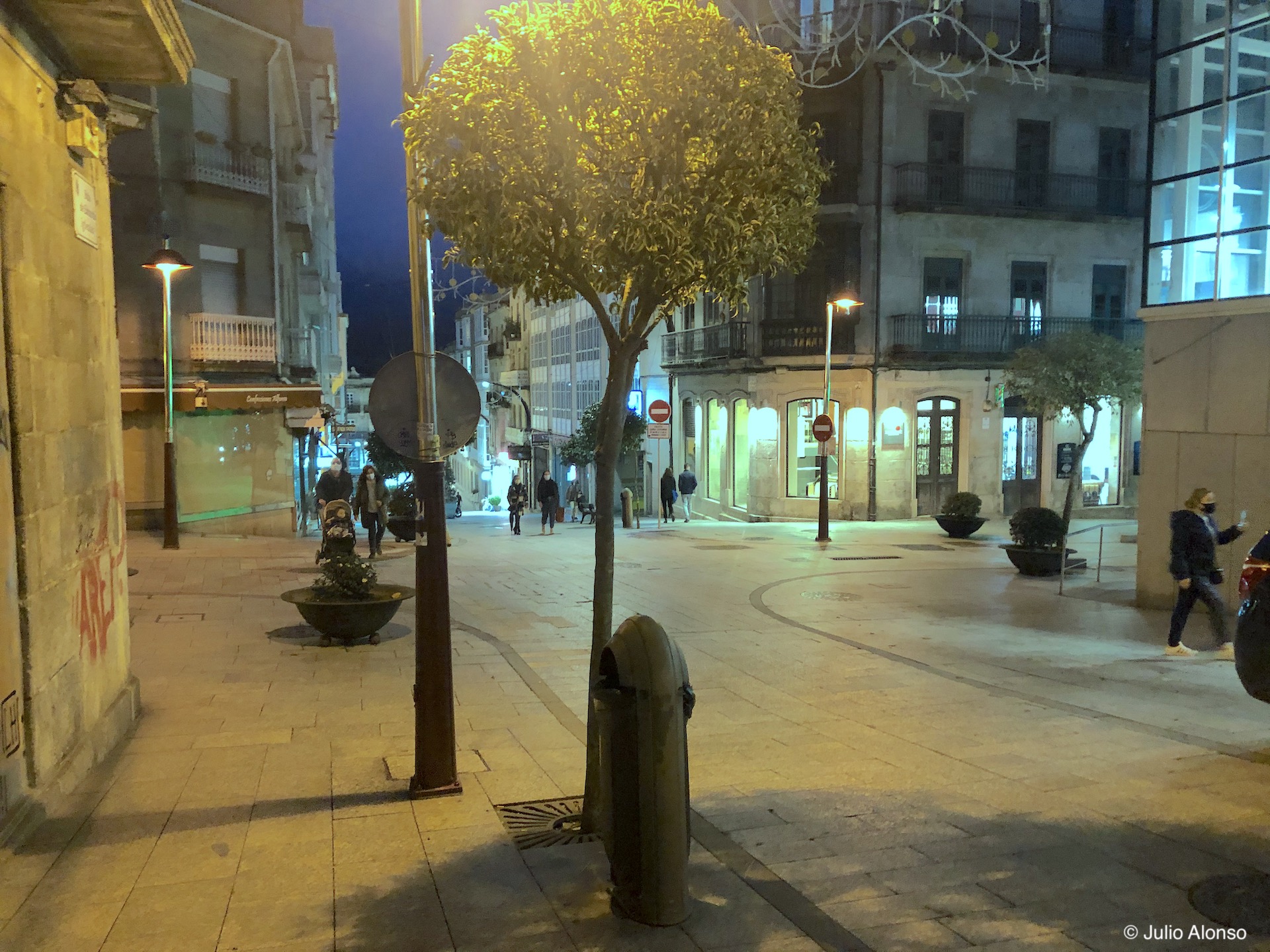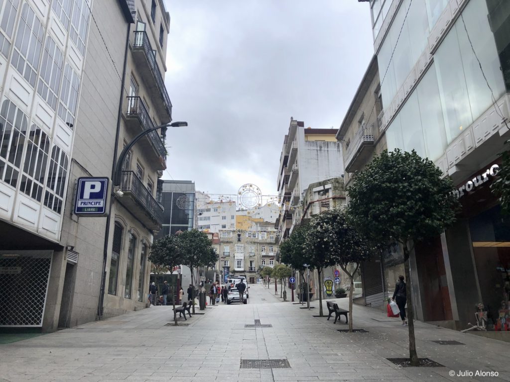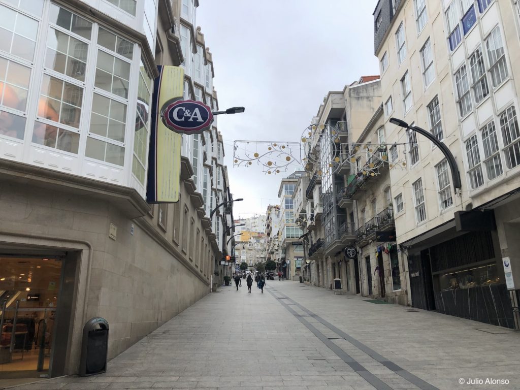 En el primer tramo de la calle, en la acera de enfrente del mercado existe una pequeña cafetería y a su lado había un comercio de telas muy conocido que ya ha desaparecido: “Gervasio”, cuyo edificio está derribado. Junto a ese edificio está “Fincas Santoro”, establecimiento dedicado a la administración de fincas, una clínica canina relativamente nueva, un local de decoración y, más abajo, un edificio derribado que sólo conserva la fachada y que hace esquina con la Rúa Progreso. En el bajo de este edificio estaba hace años la “Ferretería Iturmendi”, que actualmente ocupa otro local unos metros más arriba en la Rúa Progreso.