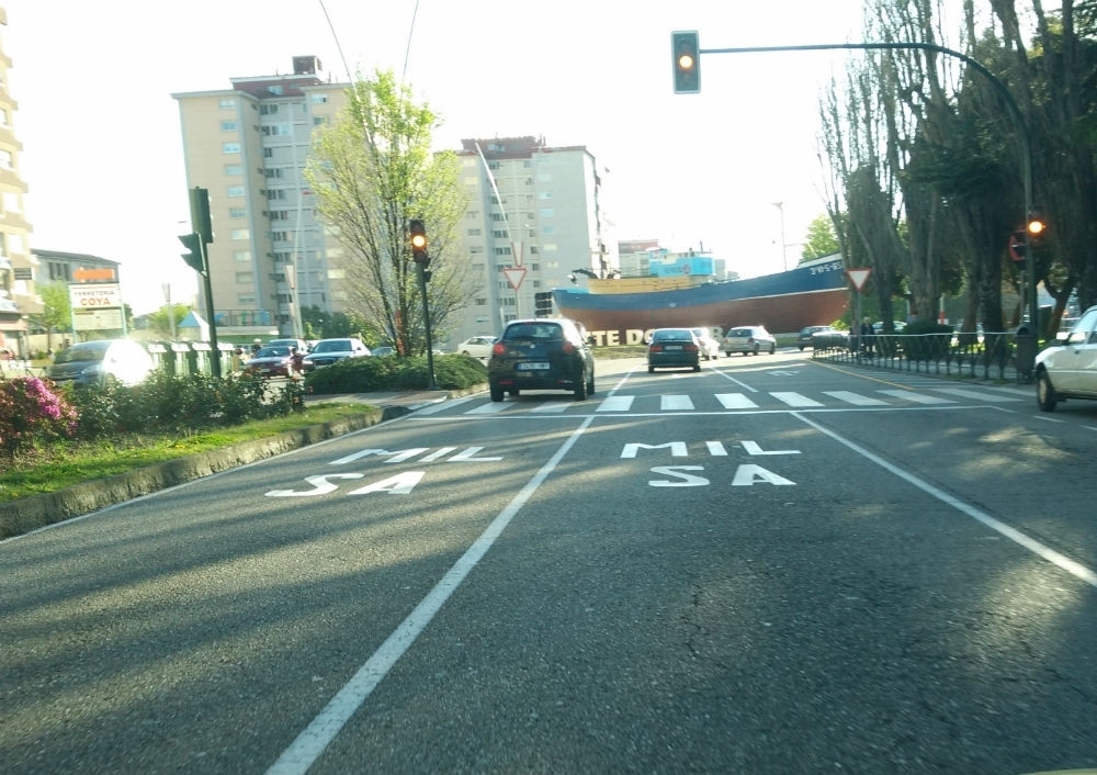 Ahora, dos meses después de su estreno, se han pintado señalizaciones horizontales sobre la calzada para ayudar a los conductores en su incorporación. Los letreros pintados sobre el asfalto indican la dirección a escoger antes de entrar en la rotonda.