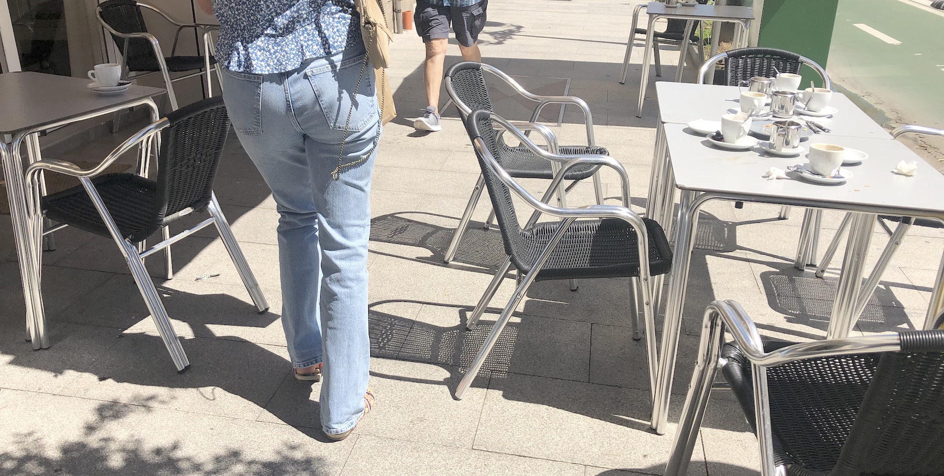 Sin embargo, esa permisividad debe ir acompañada de los límites razonables para que su exceso no constituya una barrera para la movilidad de los viandantes y, mucho menos, para aquellas personas que tienen una movilidad reducida. Obsérvese, por ejemplo, lo que muestra esta fotografía tomada hace unos días en una céntrica calle de la ciudad de Vigo. Los peatones pueden pasar con dificultad entre esas mesas y sillas, pero una persona en silla de ruedas, una persona con un coche de bebé, o una persona que necesite ir acompañada por otra, lo tendría realmente muy difícil.