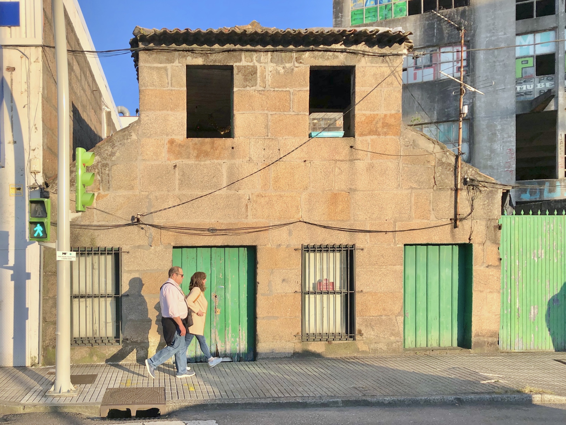 Hace unos años cerró definitivamente sus puertas el histórico bar llamado ‘María la de la playa’, ubicado en la avenida de Beiramar, de la ciudad de Vigo. Existía desde antes de la Guerra Civil española, en una época en la que las olas del mar batían casi a la entrada, frente al astillero de Barreras. Era conocido, además, por su cocina sencilla y de gran calidad, especializada en pescados y mariscos. Durante algún tiempo todavía podía verse el cartel con el nombre del establecimiento. Pero el progreso terminó borrando todas sus huellas y ahora sólo queda el pequeño edificio que lo albergaba. Puede comprobarse mediante esta fotografía que la puerta y las ventanas de la planta baja están cerradas. Parece completamente vacío. Sin embargo, las ventanas de la planta superior están abiertas y en una de ellas puede observarse una jaula con una mascota que disfruta del aire libre y del sol del atardecer, de ese mismo sol que otrora alumbraba la vida de los pescadores y de los obreros de los astilleros. Ahora sólo quedan los recuerdos, y un pájaro.