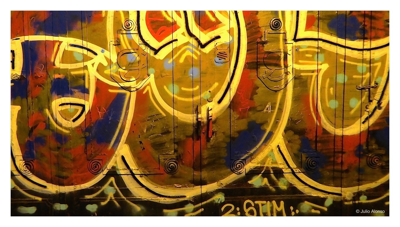 No nos referimos al desagradable garabato que mancha y deteriora una pared o un portalón, acciones que debieran ser perseguidas y castigadas de modo ejemplarizante, sino a las obras de arte elaboradas con un talento que en la mayoría de las ocasiones queda en el anonimato o, como mucho, en el círculo más próximo. Algunas de esas obras resultan efímeras porque el soporte tiene las horas, los días o quizá las semanas, contadas, como este portalón del antiguo —y ya histórico— colegio de Cluny, en la calle Gran Vía de Vigo, que ahora queda inmortalizado en esta fotografía cuyo mérito es, fundamentalmente, y justo es reconocerlo, del autor del grafiti.
