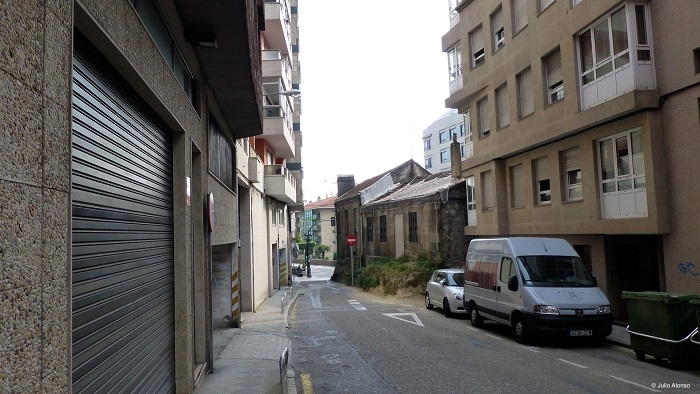 Esta fotografía, tomada hace años, muestra uno de los embudos que existían en una zona céntrica de la ciudad de Vigo, una pequeña calle que conectaba la Rúa Menéndez Pelayo con el cruce de Peniche, constituido por las calles Tomás Alonso, Pi i Margall y López Mora. En una de esas pequeñas casas existía un fielato, una especie de frontera que controlaba la entrada de productos prohibidos en el núcleo urbano, lo que se llamaba estraperlo, y que estuvo operativa hasta finales de los años cincuenta del pasado siglo XX. En aquella época la ciudad de Vigo terminaba prácticamente en Peniche, y luego, más allá, estaba el barrio de As Traviesas, por eso, quienes vivían en esta zona que hoy es tan populosa decían aquello de “voy a Vigo”, cuando hoy se dice “voy al centro”. Pero todo eso ha quedado para la historia y el incómodo estrechamiento que ahora comentamos ha quedado abierto con una magnífica y preciosa plaza diseñada por Antón Pulido, el pintor gallego de mayor proyección internacional, una plaza llamada “Praza das apertas” que resulta un lujo artístico en medio de la ciudad de Vigo.