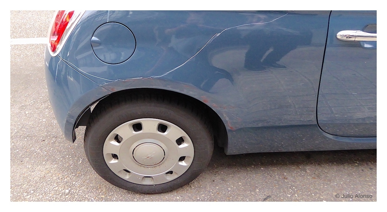 En este caso, tal como se observa en la fotografía, varios coches de todo tipo y aparcados en la misma calle, han aparecido rayados, a lo largo de toda su carrocería. La señal es irregular en su profundidad y en su trayectoria, demostrando que el origen es intencionado y que se ha realizado con un objeto contundente, quizá una llave o una simple piedra. La avería es de precio elevado y el autor o autores han escapado sin asumir la responsabilidad que les corresponde. Debería existir más vigilancia nocturna, sobre todo, en las horas en las que los más trasnochadores se recogen luego de una noche de juerga, posiblemente inconscientes de sus actos, porque la diversión no está reñida con el respeto a los demás y a sus propiedades.