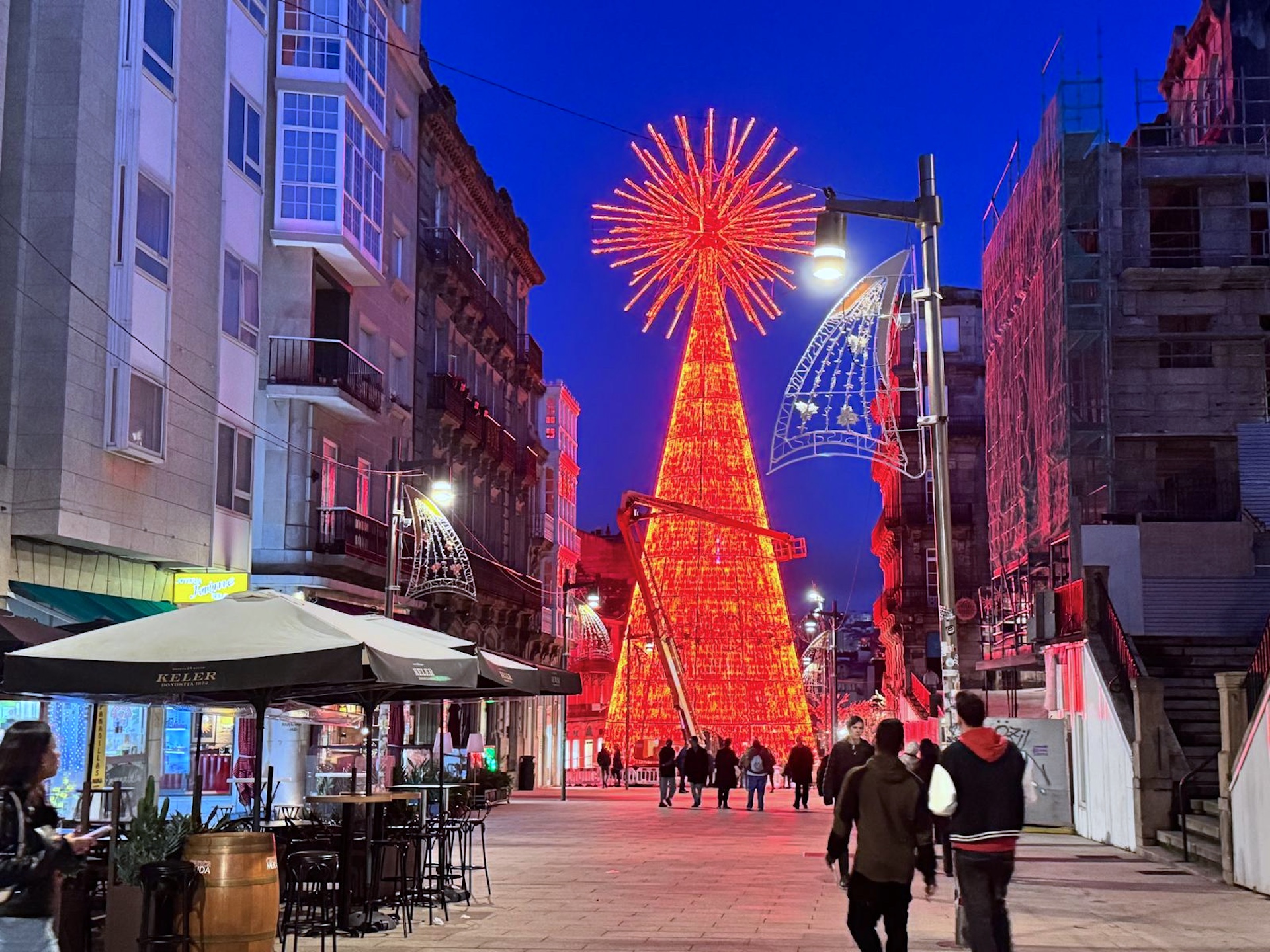 Este miércoles 29 de octubre ya se han podido observar los primeros destellos de la Navidad de Vigo. El acontecimiento extraoficial ha tenido lugar a últimas horas de la tarde en la Porta do Sol, cuando los técnicos estaban probando el montaje del gigantesco árbol que brillará durante todas las fiestas navideñas y que será, sin duda, el motivo de miles y miles de fotografías y videos que llevarán las imágenes de Vigo por todos los rincones del mundo.