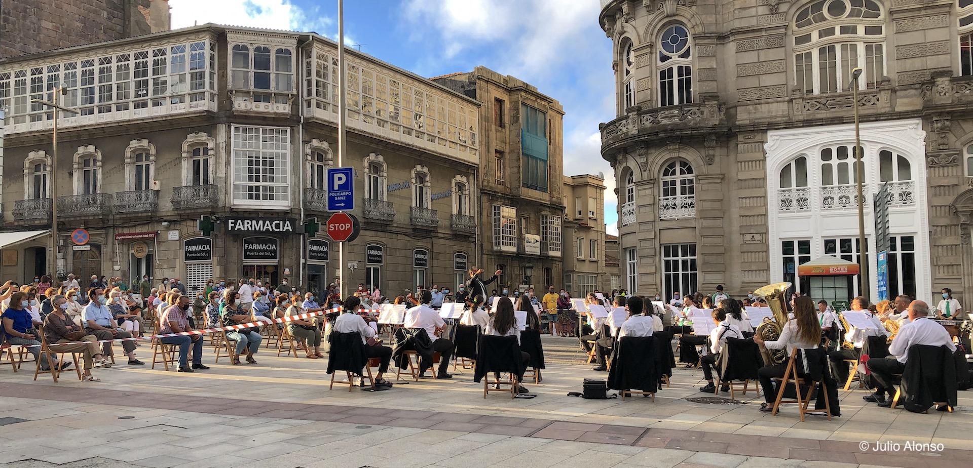 De este modo, la terraza del Auditorio Mar de Vigo ha contado con actuaciones de conjuntos y solistas relevantes, con un lleno total del aforo permitido. Las bandas de música, por su parte, ofrecen conciertos en diferentes puntos de la ciudad, con una zona delimitada para asientos separados y dispositivos de desinfección, y los músicos, con las inevitables excepciones de algunos instrumentistas de viento, todos ellos con mascarilla, cumpliendo la norma y dando ejemplo.