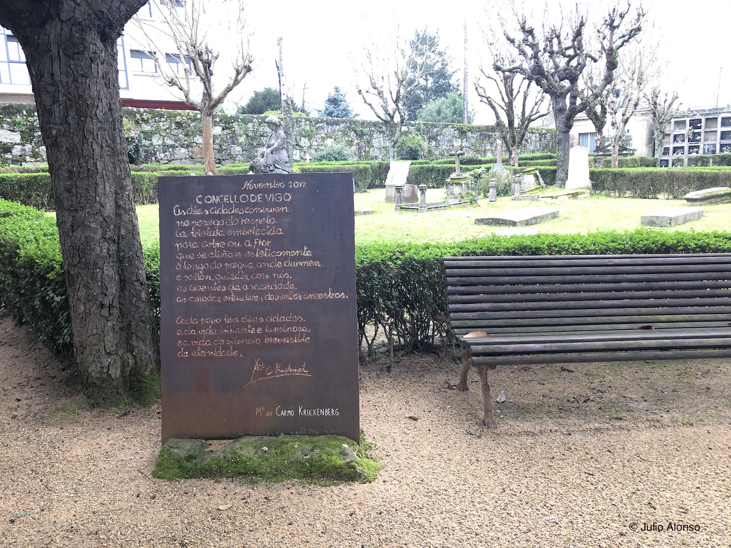 En ese jardín también está la tumba del inolvidable poeta Carlos Oroza, con la inscripción de algunos de sus poemas, de enorme significado; y también una placa con un sentido poema de María do Carmo Kruckenbert.