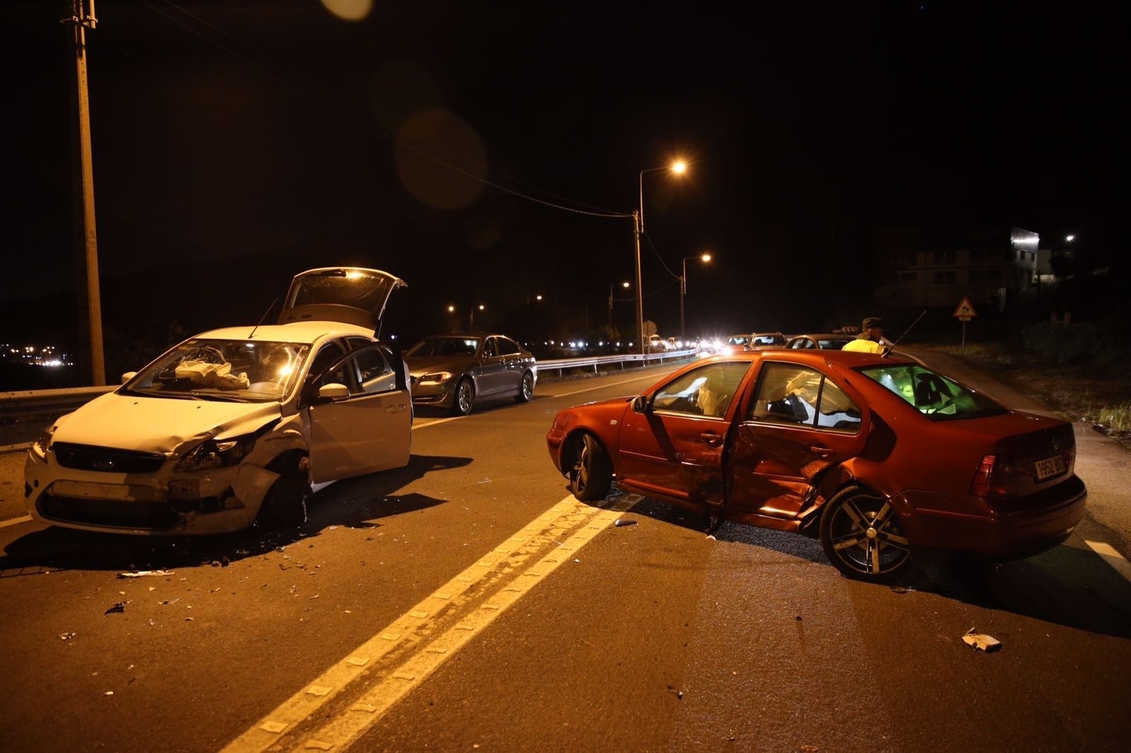 Dos turismos chocaron frontolateralmente en la zona en la que finaliza el doble carril, en sentido Saiáns, y quedaron cruzados en medio de la calzada.