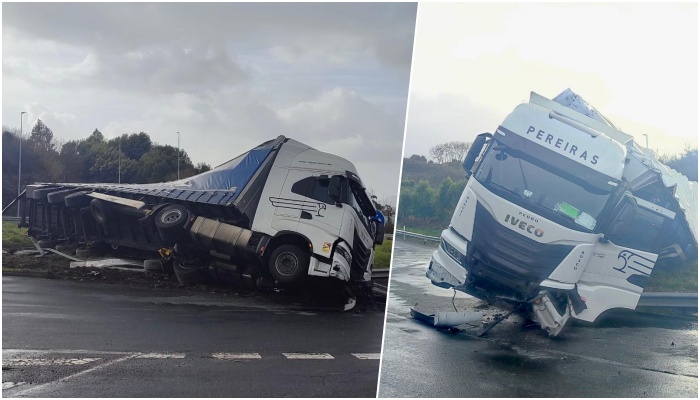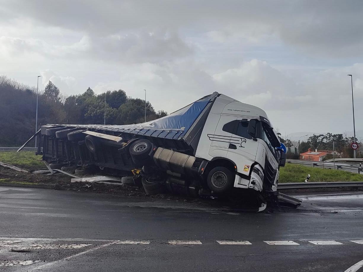Aparatoso accidente en la VG20: un camión vuelca en la salida de Matamá