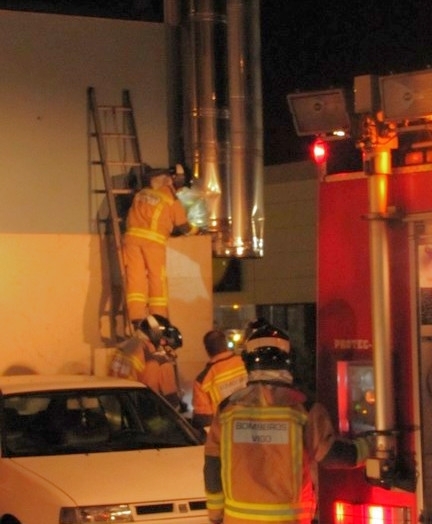 Eran aproximadamente las once menos cuarto de la noche. De inmediato tres camiones de bomberos y varias dotaciones de la Policía Local y Nacional, así como una ambulancia medicalizada del 061, acudieron a la zona y se percataron de que en realidad ardía la zona alta de la chimenea instalada en la fachada del edificio para la salida de humos de la pizzería La Pasiva.