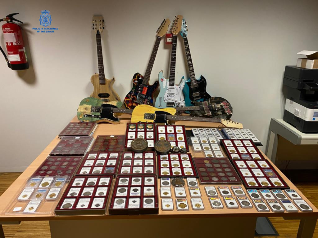 En una de las viviendas se localizó una caja fuerte de grandes dimensiones en cuyo interior se localizaron más de mil monedas de coleccionista de todo tipo y antigüedad, así como guitarras eléctricas de famosos grupos del pop español, con un alto valor económico y que se habrían obtenido por los beneficios de la actividad realizada por el presunto autor, cuya empresa ya había sido inspeccionada y sancionada en el pasado por incumplir la normativa en cuanto a la comunicación a las autoridades respecto a la venta de los productos químicos que dispensa.