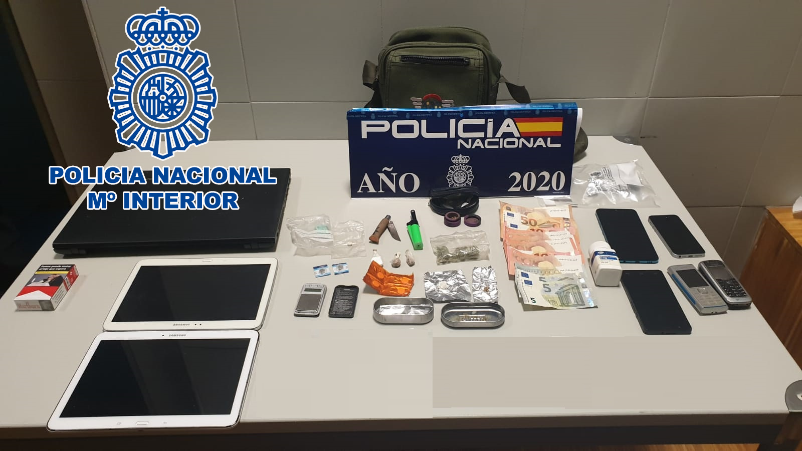 En torno a las 04:50 de este viernes se dio el alto a un automóvil de alta gama cuyo conductor actuaba “con cierto nerviosismo”, por lo que los agentes registraron el interior del vehículo. Fruto de ello, localizaron diversos utensilios para el consumo de sustancias estupefacientes. En una revisión más pormenorizada descubrieron un hueco oculto en la consola central, donde encontraron varias papelinas de cocaína, heroína, hachís cortado, un frasco con 42 comprimidos de trankimazin, varias pastillas de metadona, “diverso dinero en efectivo” y otros efectos.