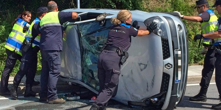 Dos personas resultaron heridas este martes al sufrir un accidente de tráfico en Vigo. El vehículo que ocupaban volcó cuando circulaba por la avenida del Aeropuerto. Un hombre y una menor de edad sufrieron heridas de carácter leve. Agentes de la Policía Local retiraron el turismo de la vía y regularon el tráfico en la zona.