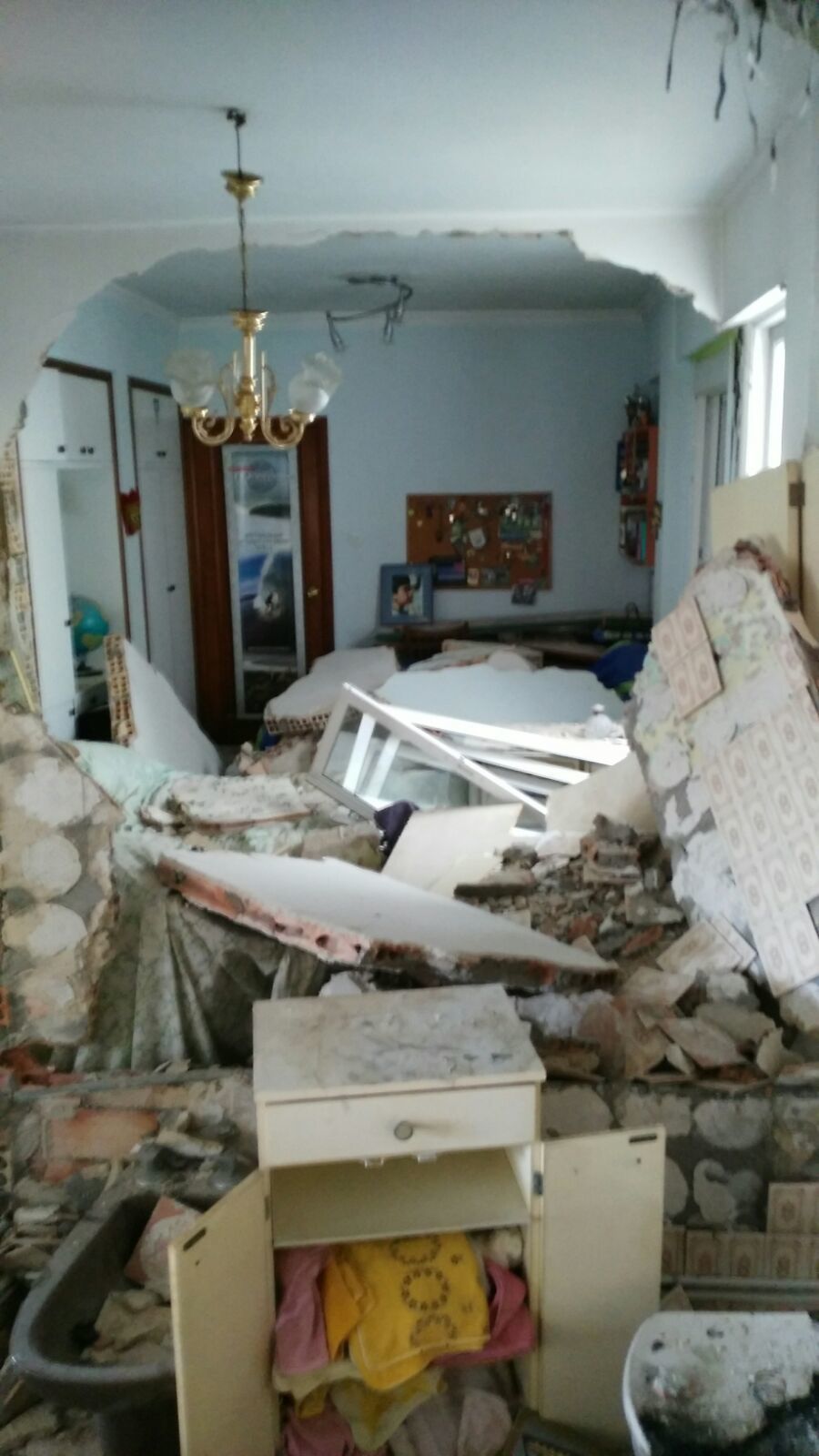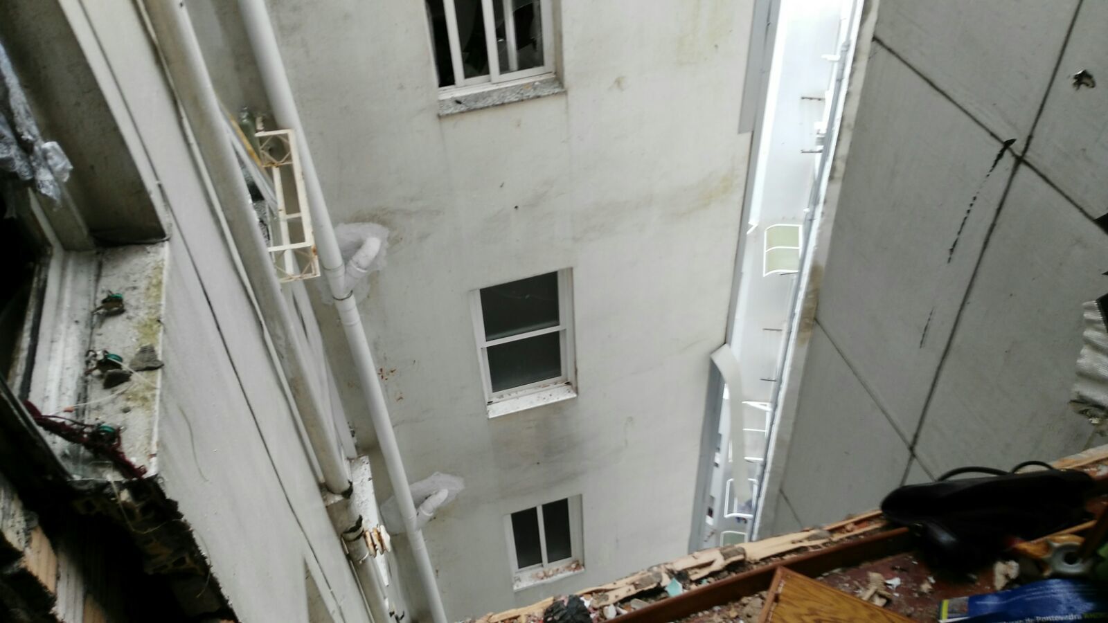 La onda expansiva arrancó la balconada del primer piso, galería y verja incluidas, además de ventanas, marcos y persianas. Pero no fue la única planta afectada, ya que en otros muchos pisos también salieron volando los ventanales. En la fachada del inmueble, justo debajo de la ventana del sexto, se aprecia claramente un gran grieta provocada por la explosión.