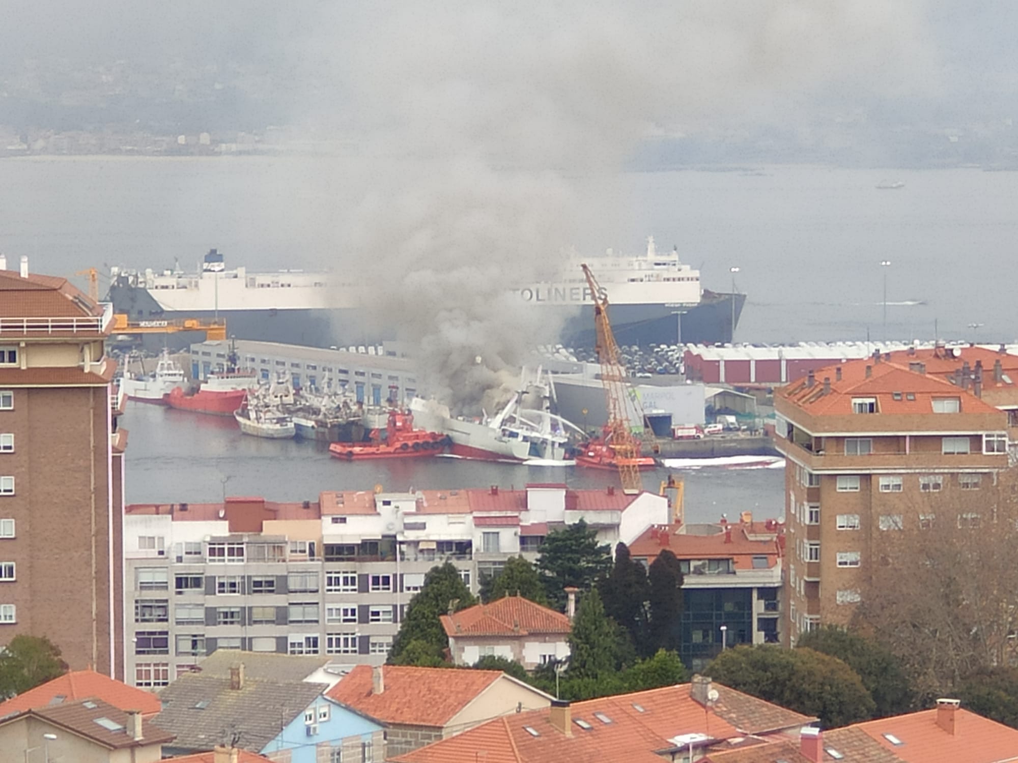 Concretamente, el fuego se originó dos niveles por debajo de la cubierta, en un lugar de difícil acceso para los equipos de extinción. Eso y la intensa humareda que se hizo visible desde los dos márgenes de la ría desde las 08.45 horas han dificultado enormemente las tareas de extinción, que proseguían a las 20.15 horas. El viento llevó el olor a quemado por toda la ciudad. Primero hacia Alcabre y Bouzas; luego hacia el centro de Vigo.