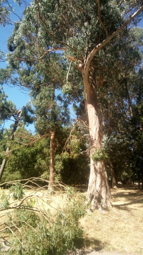 Dos dotaciones de efectivos del parque de Balaídos acudieron este miércoles a la calle Padre Seixas ante el riesgo de desplome de varias ramas de un eucalipto del parque de A Bouza sobre la vía pública. De hecho una de grandes dimensiones ya se había caído sobre la acera.