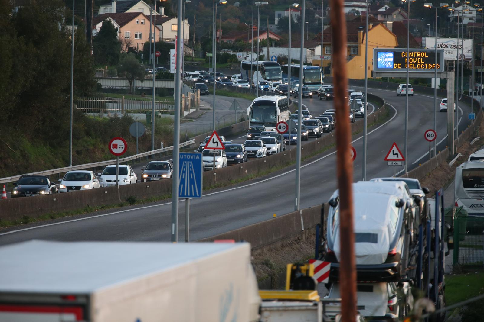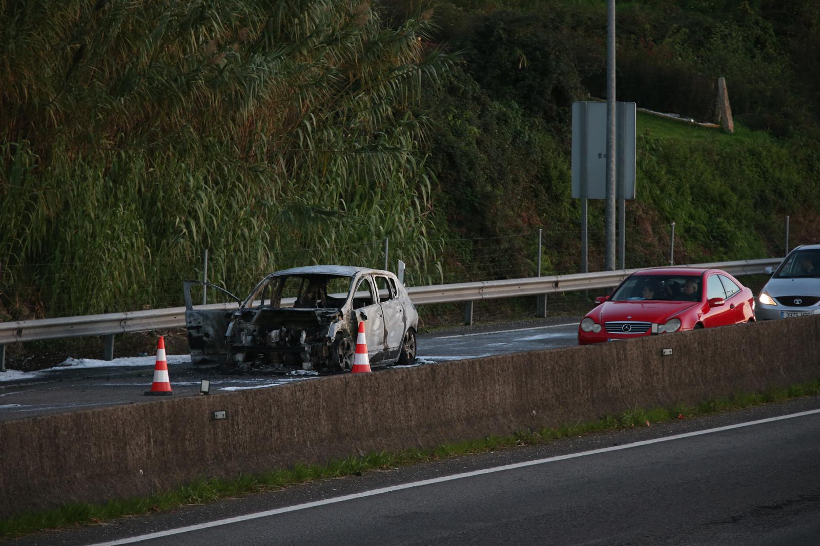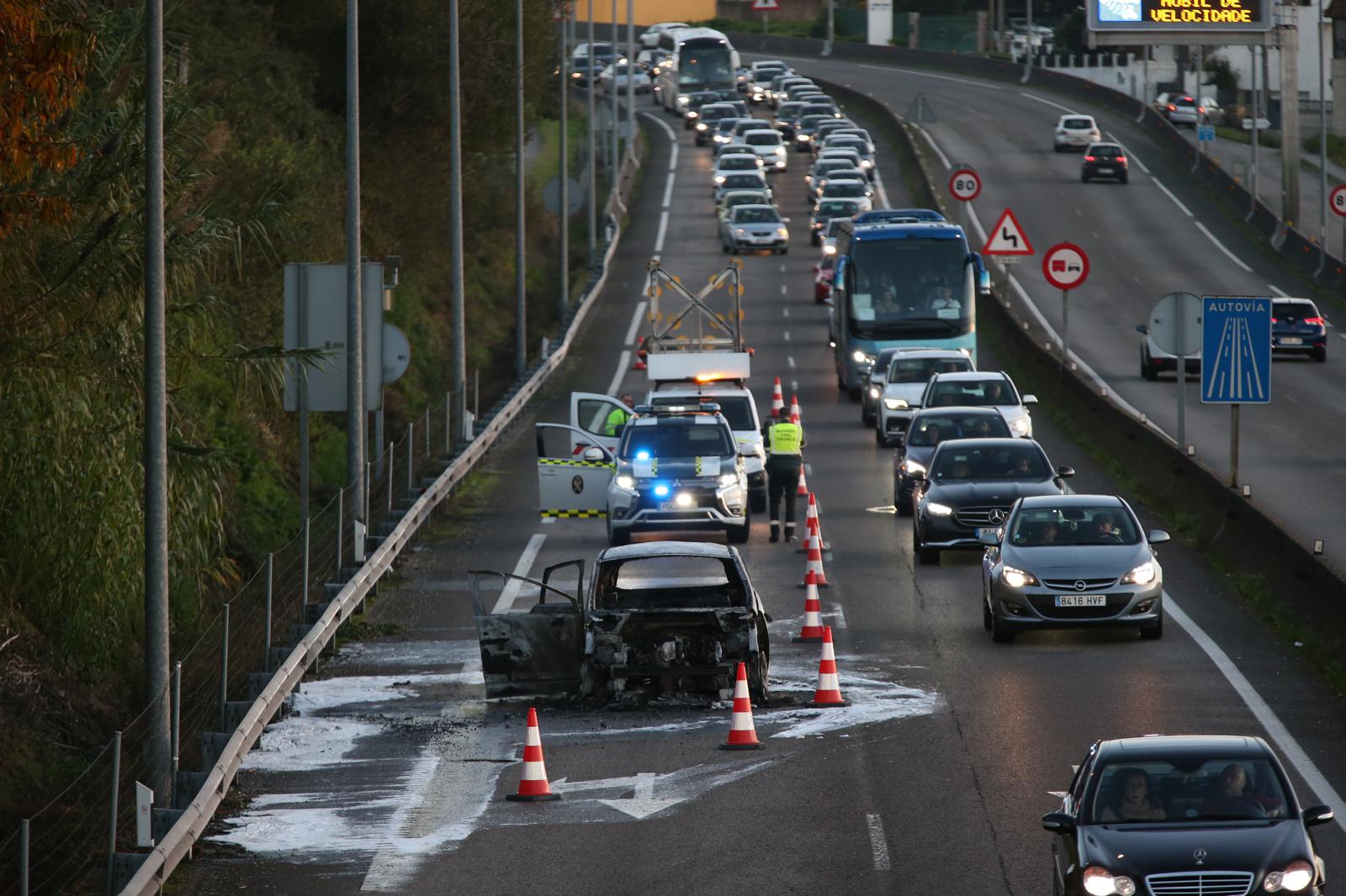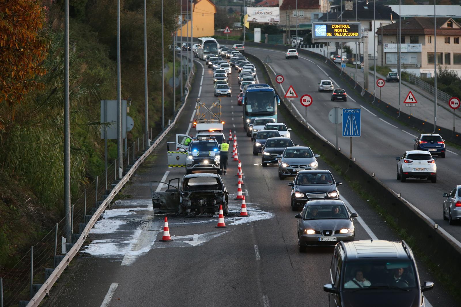 El incendio de un turismo en la entrada a Vigo por la autovía A55 (Vigo-Tui) provocó importantes retenciones. El incidente se registró sobre las 17:00 horas a escasos metros del Seminario, muy cerca de la intersección con la avenida de Madrid.