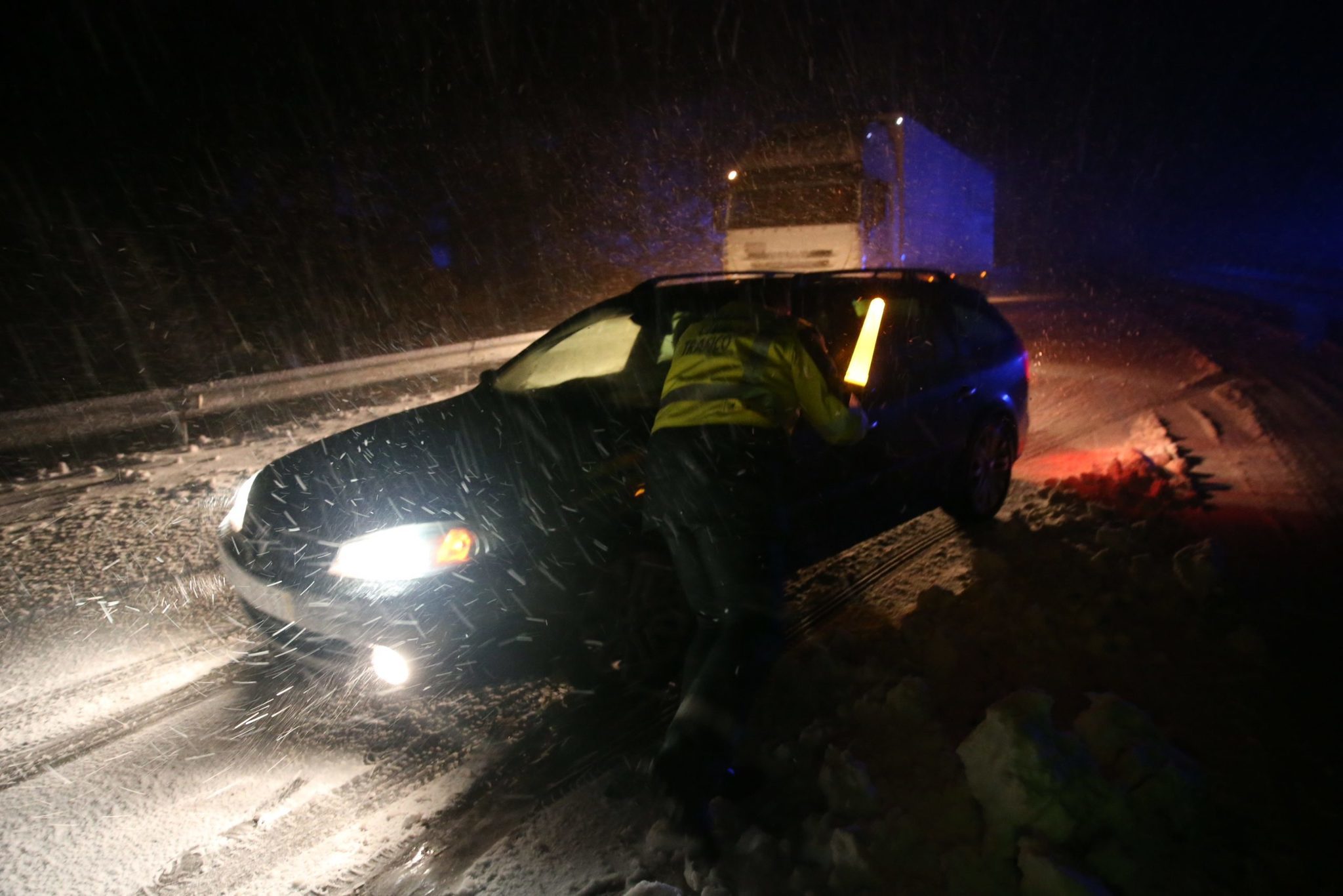 Complicada situación la que se vivió la madrugada de este jueves en la Autovía Rías Baixas debido a la nieve. El tráfico se vio afectado por la situación de la carretera y los problemas se concentraron en la A52, a su paso por A Gudiña, A Canda y Padornelo. Imágenes: Selika.