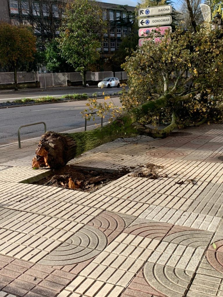 No hubo que lamentar daños personales y en la ciudad de Vigo tan solo se registró la caída de algún árbol, uno de ellos en la Gran Vía (frente al Instituto Santo Tomé), y contenedores desplazados en la calzada. Por el resto, la noche discurrió sin incidencias de gravedad.