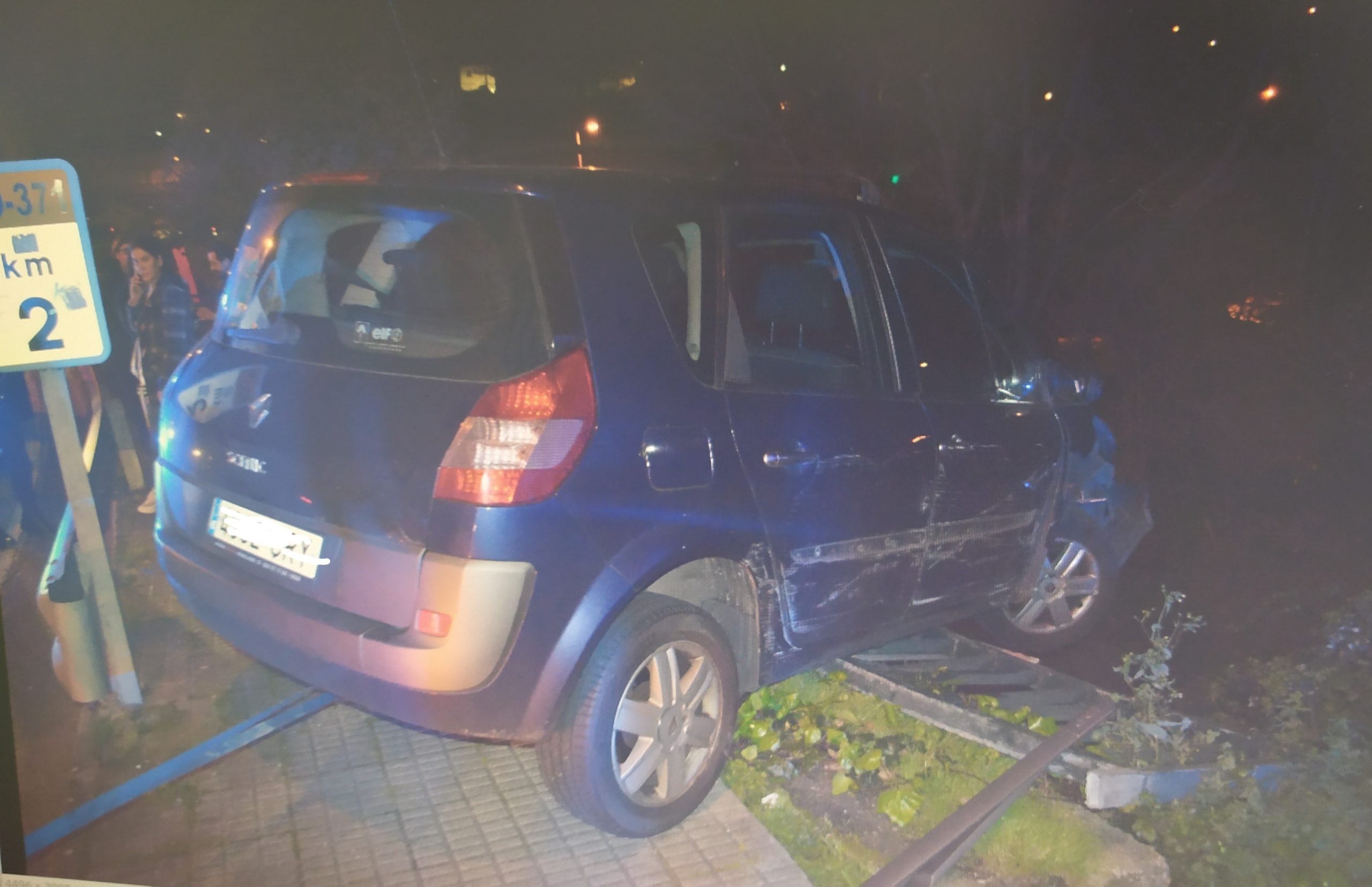 La primera de las incidencias tuvo lugar en la Avenida da Ponte, en las cercanías de Ramón Nieto, donde un vehículo se salió de la carretera y se quedó colgando de un puente, teniendo que ser sujetado con un todoterreno. Con todo, el conductor y la acompañante estaban fuera de peligro en el exterior del automóvil.