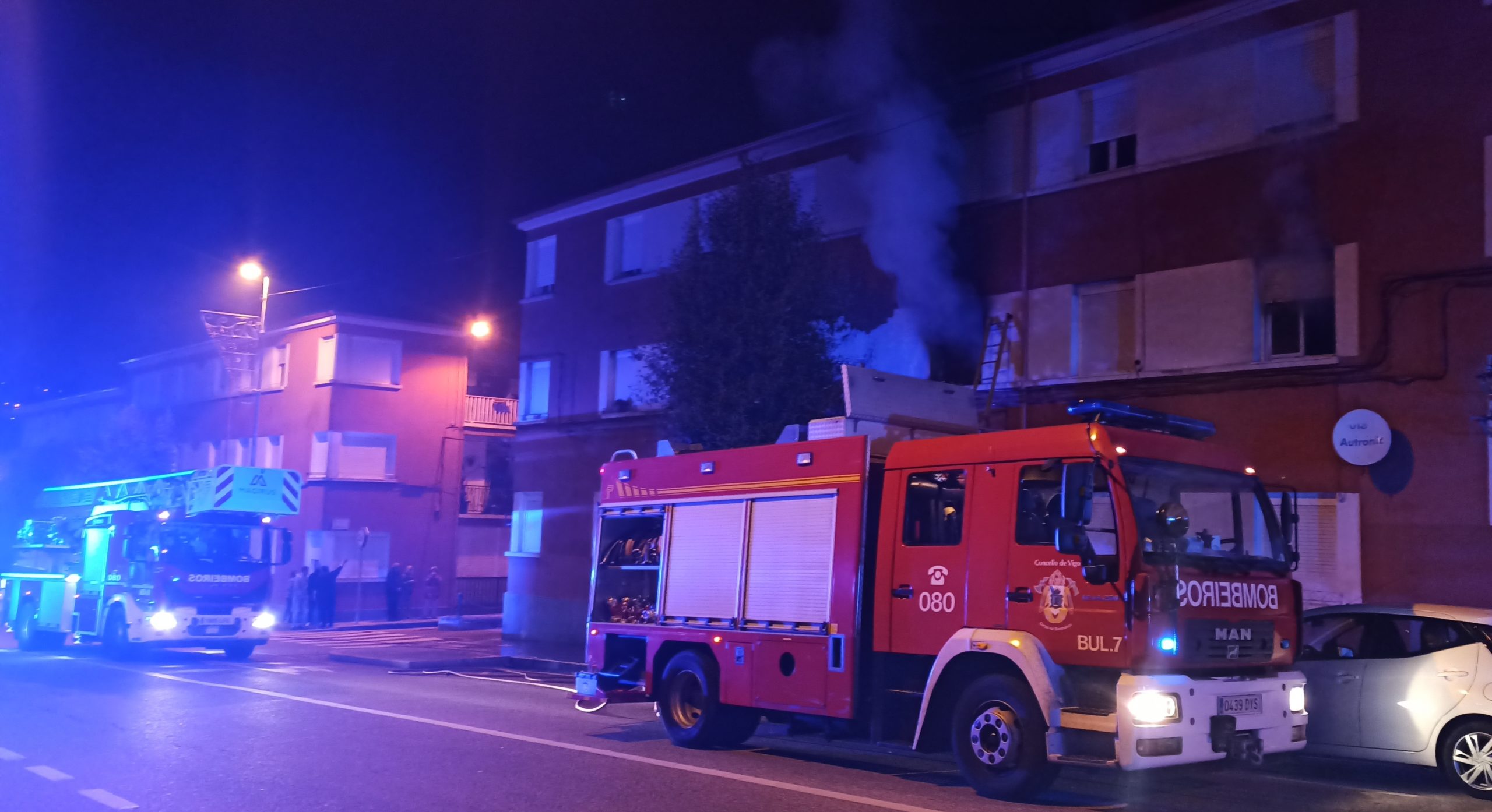 Trasladan a una persona por inhalación de humo a causa de un incendio en Vigo