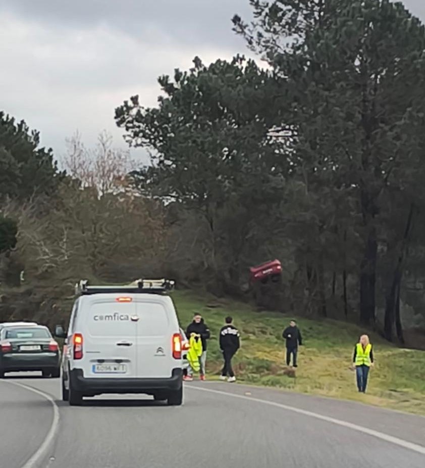 Por razones que se desconocen, el vehículo se salió de la vía y acabó volcado entre la vegetación, siendo necesaria la presencia de una grúa para retirarlo.