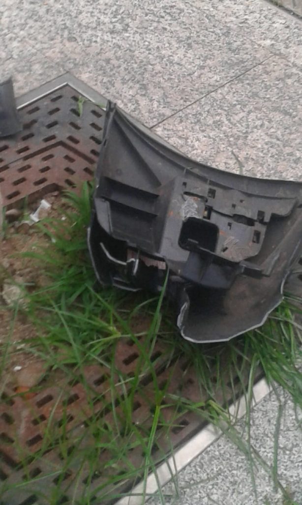 El vehículo presentaba daños en el frontal y parte de la carrocería se desprendió en la colisión quedando esparcida por la acera. La Policía procedía a tomar declaración al conductor.