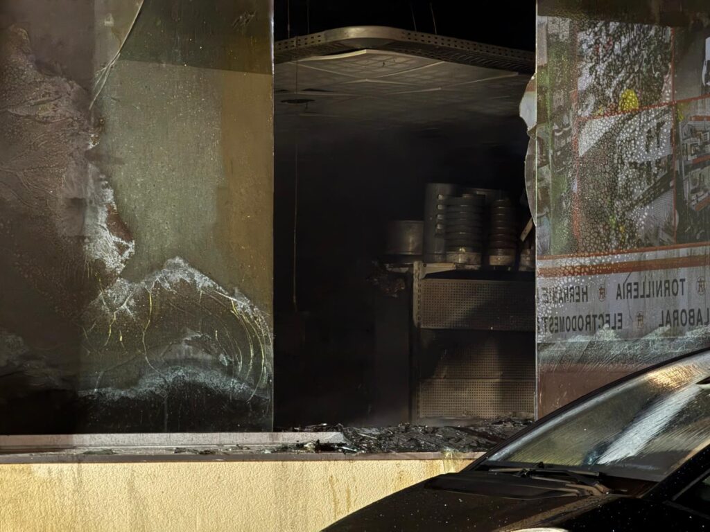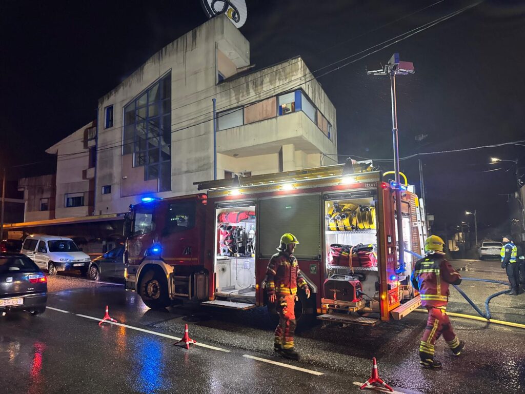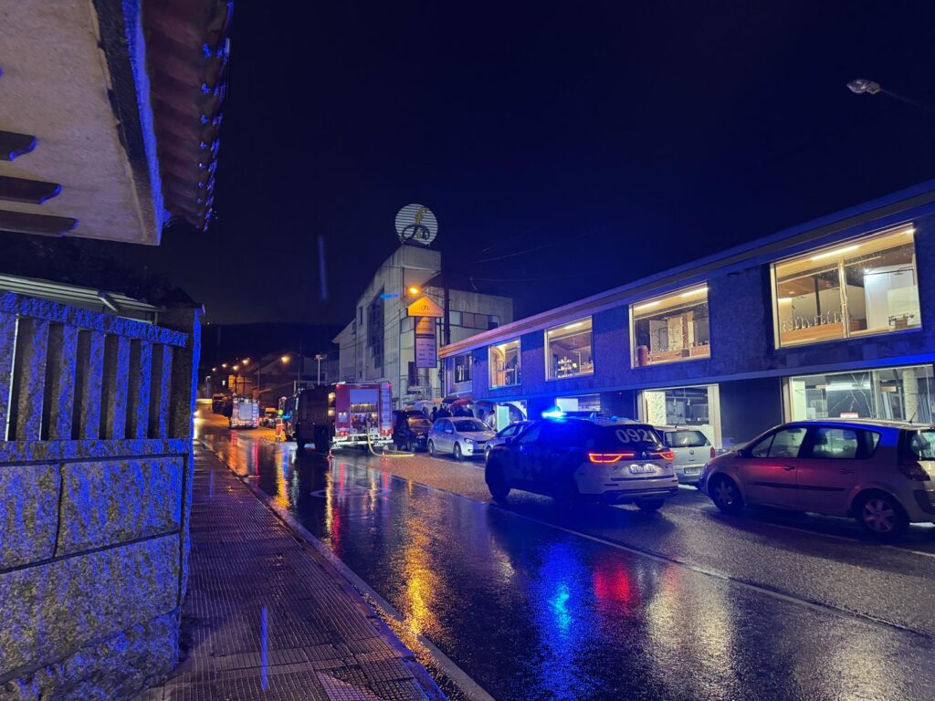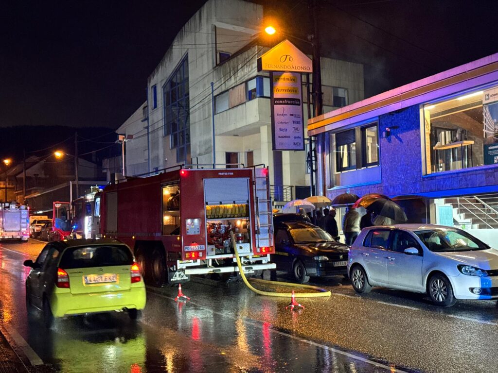 La alerta saltó cuando se detectó un incendio en la ferretería Fernando Alonso, en el número 50 de la carretera do Porto. Varias llamadas avisaron del fuego cuando el local estaba cerrado. Hasta el lugar se desplazaron tres camiones del servicio municipal de Bomberos, además de Policía Local y Nacional.