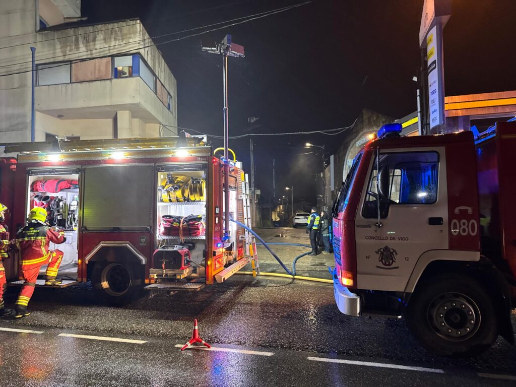 Efectivos de los Bomberos de Vigo, Policía Nacional y Policía Local fueron movilizados la noche de este martes por un incendio. El suceso se registró minutos antes de las 21:00 horas en una conocida empresa de construcción de la parroquia viguesa de Beade. No hubo que lamentar daños personales, pero sí materiales. La compañía tiene una ferretería, que resultó afectada, y una nave con almacén.