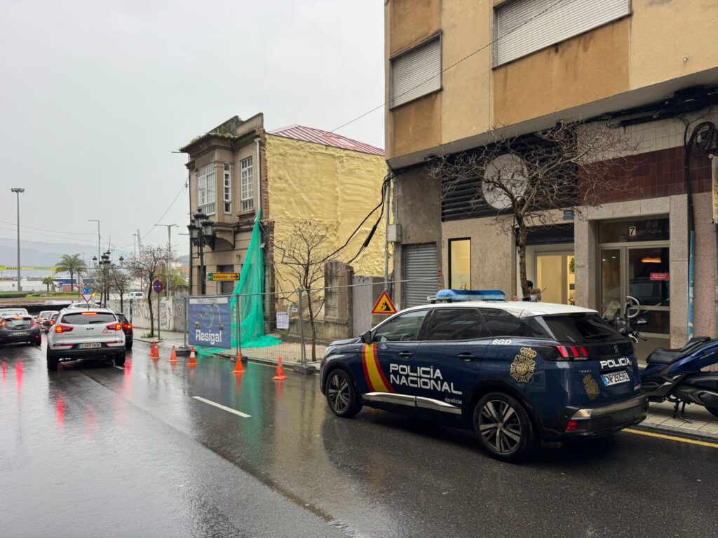 A 24 horas de que una excavadora derribara parte del sótano de su vivienda en República Argentina 3, Joaquín Abreu Vidal no ha podido volver a casa. El hueco que comparte con el edificio colindante (en proceso de demolición) permanece sin cerrar y, con la lluvia torrencial que azota Vigo este miércoles, el agua se cuela por su sotna. «He pasado la noche en vela achicando», cuenta a Vigoé desde la calle, donde custodia la finca junto a su madre y su hermana.
