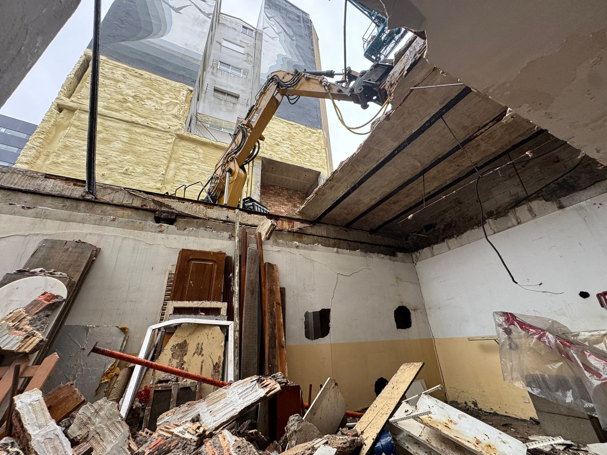 El lunes, la retroexcavadora abrió el forjado sin vallar ni precintar la zona. «Entraron a saco», relata Joaquín, «podían haber cerrado mi parte con bloques con ladrillos, con chapas… de cualquier manera, trasladado mis cosas y luego derribar. Pero lo hicieron con contundencia para que se abrían grietas. Mi casa aguanta porque la construyó mi abuelo: bóvedas de ladrillo, vigas de hierro y madera incrustada”.