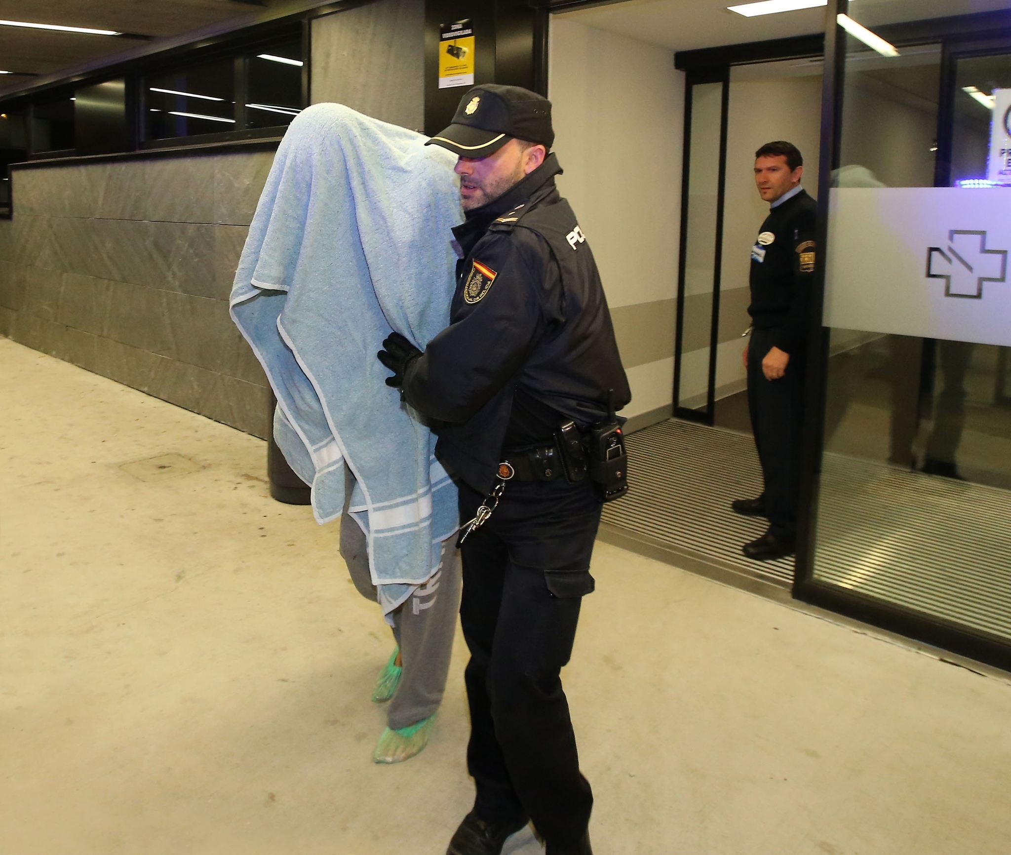 En las Urgencias fue asistido de varios cortes que evidenciaban un intento de suicidio, por lo que se dio aviso inmediato a la Policía Nacional. Minutos después, agentes de la Policía Judicial se personaban en el hospital y procedían a su detención. Tras ser asistido por médicos y psiquiatras durante toda la jornada del domingo, alrededor de las ocho de la tarde, era escoltado en un coche policial hasta las dependencias de la Comisaría de Vigo.